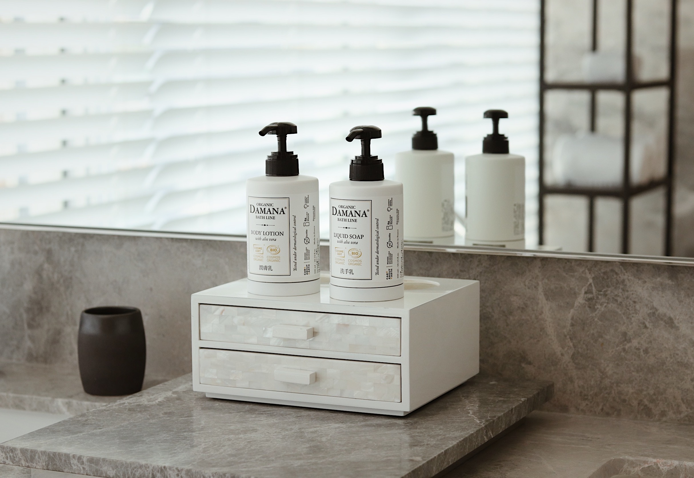 ↑圖說:晶英國際行館提供100%歐盟有機認證的沐浴備品(圖片來源:晶英國際行館提供)
