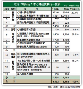 ↑圖說:國軍心輔經費明顯偏低(圖片來源:林岱樺服務處提供)