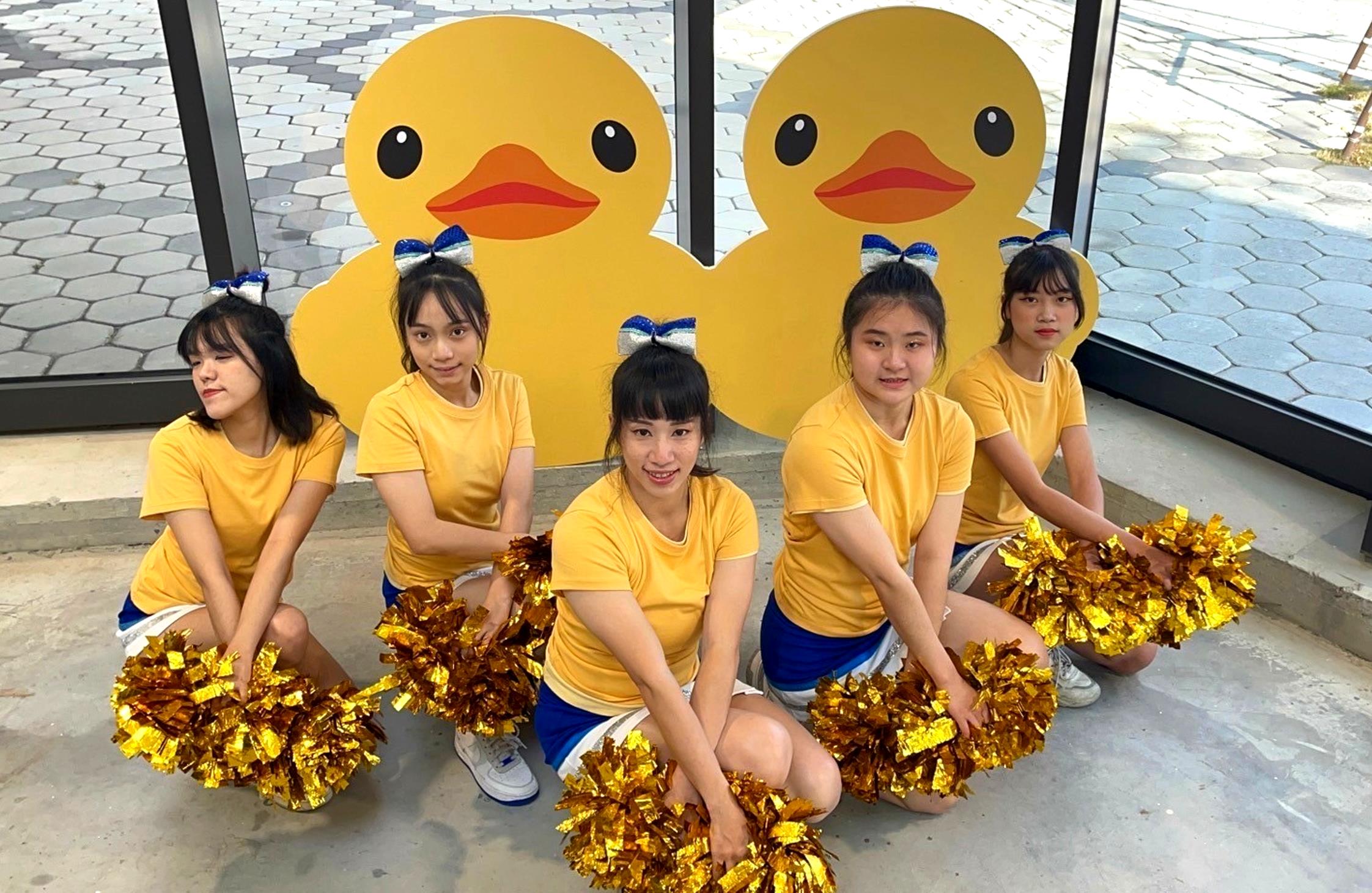 ↑圖說:搖滾熊啦啦隊曾受邀2024冬日遊樂園開幕,在黃色小鴨前演出。(圖片來源:中華民國啦啦隊總會提供)
