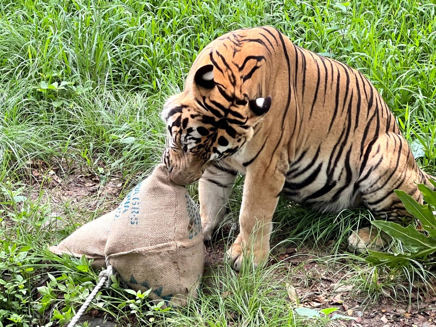 ↑圖說:氣味豐富的大香包激發孟加拉虎的狩獵本能(圖片來源:高雄市觀光局提供)