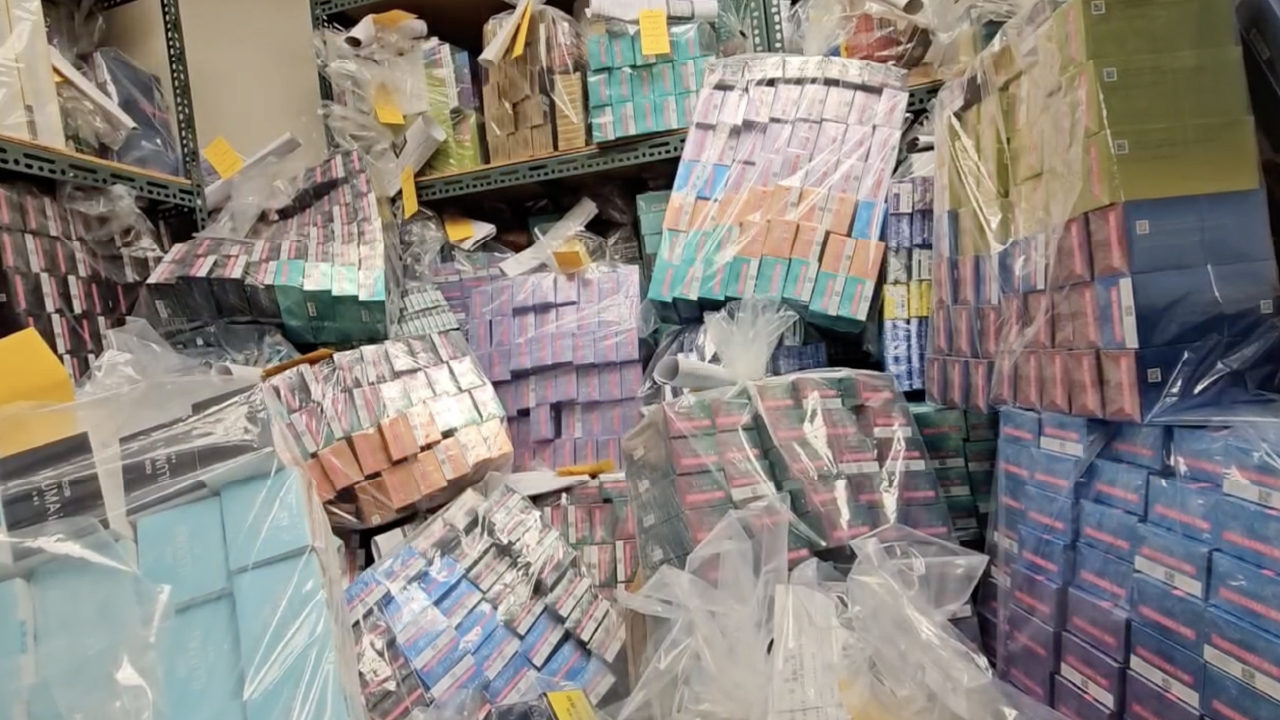 ↑圖說:加熱菸仍無法依法上市,民眾攜帶入境被查扣,數量多到已經塞爆機場海關儲藏室。(圖片來源:立委黃建賓提供)