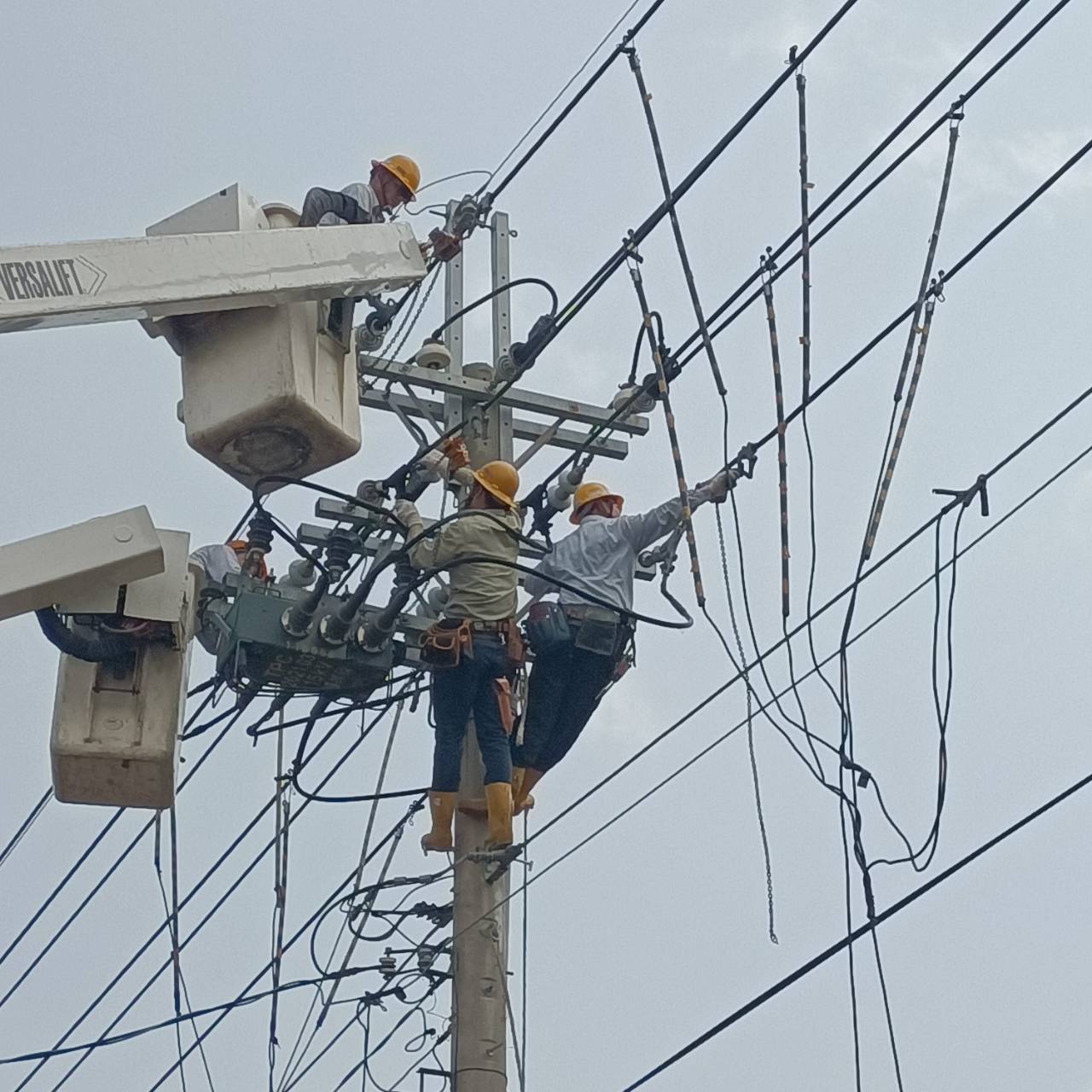 ↑圖說:鳳山區處同仁為加強穩供更換高壓配電器材。(圖片來源:台電高雄區處提供)