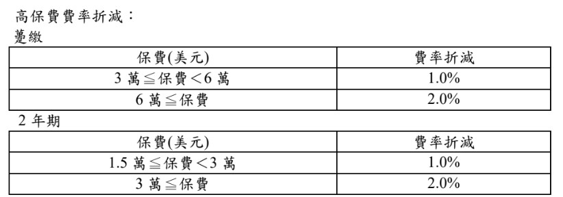 提供躉繳、2年期繳費年期,繳費方法多元且可享高保費費率折減