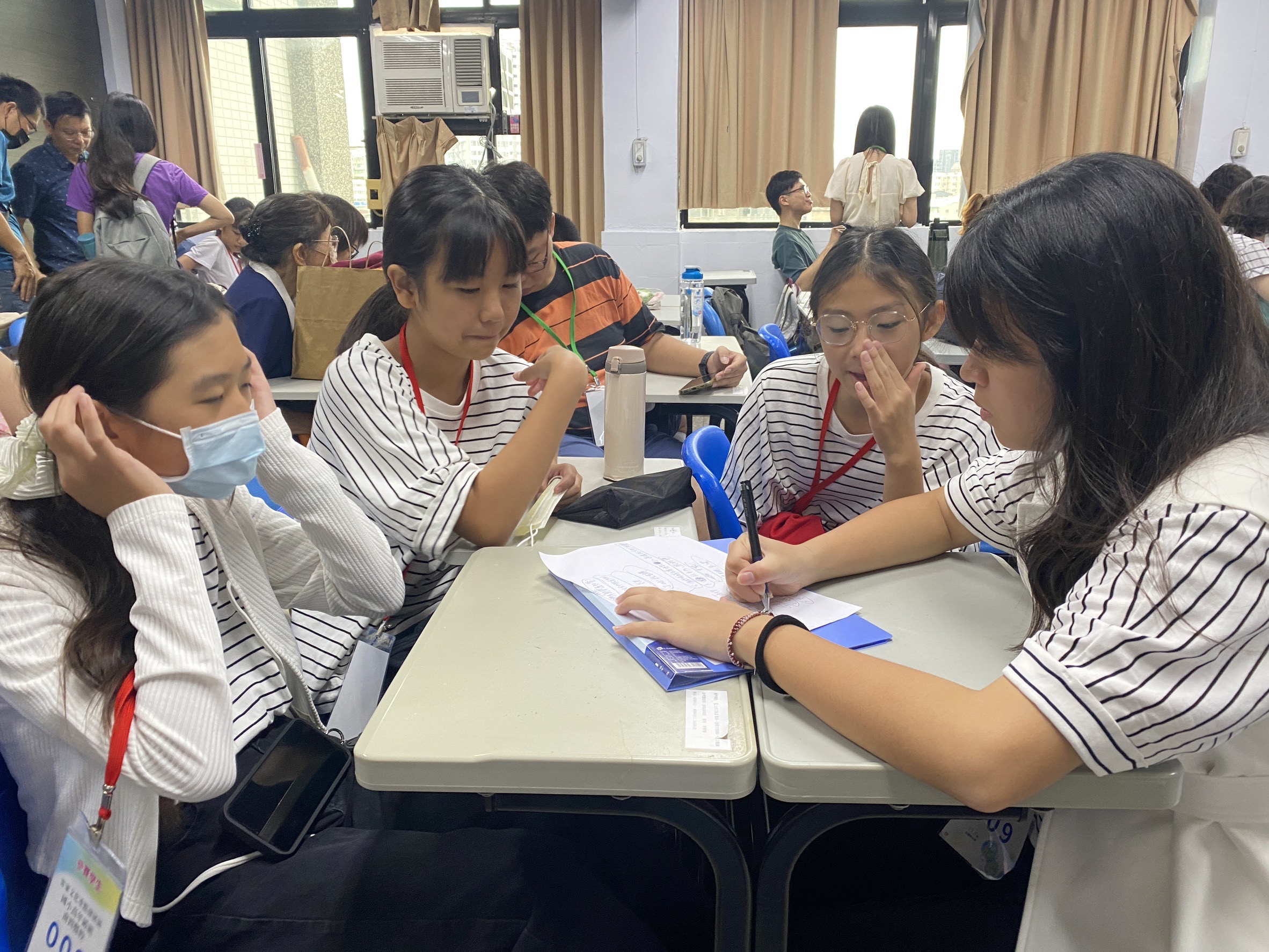 ↑圖說:美濃國小-「得人惜个客家妹」隊在抽題後討論對話呈現方式(圖片來源:高雄市客家事務委員會提供)