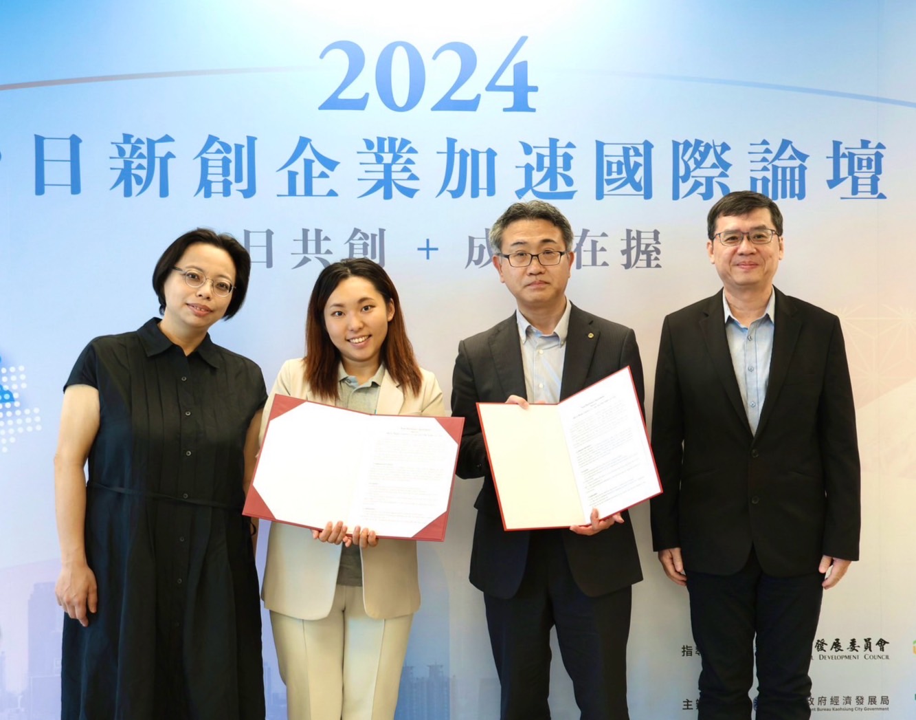 ↑圖說:大港創艦新創基地成功媒合新創與日本上市企業簽約,12日於大港創艦新創基地舉行合作意向書簽署儀式。(圖片來源:高雄市經發局提供)