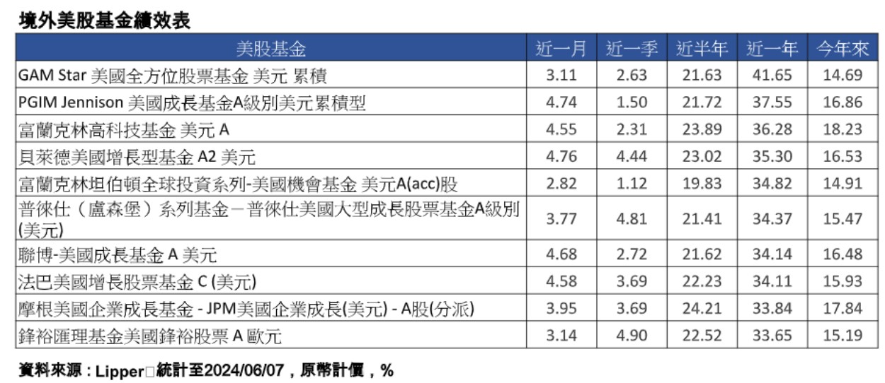 PGIM Jennison美國成長基金產品經理彭子芸表示,統計顯示,歷年第三季美股表現依舊強勢,在漲勢超前的12個市場中,美股指數就佔了5個之多,其中費城半導體指數平均漲幅4.81%居冠,那斯達克指數漲幅3.12%居次,另外,羅素1000、S&P 500、道瓊指數,漲幅區間為1.7%至1.9%,如今又有AI題材的加持,看好美股今年下半年仍可保持多頭態勢。