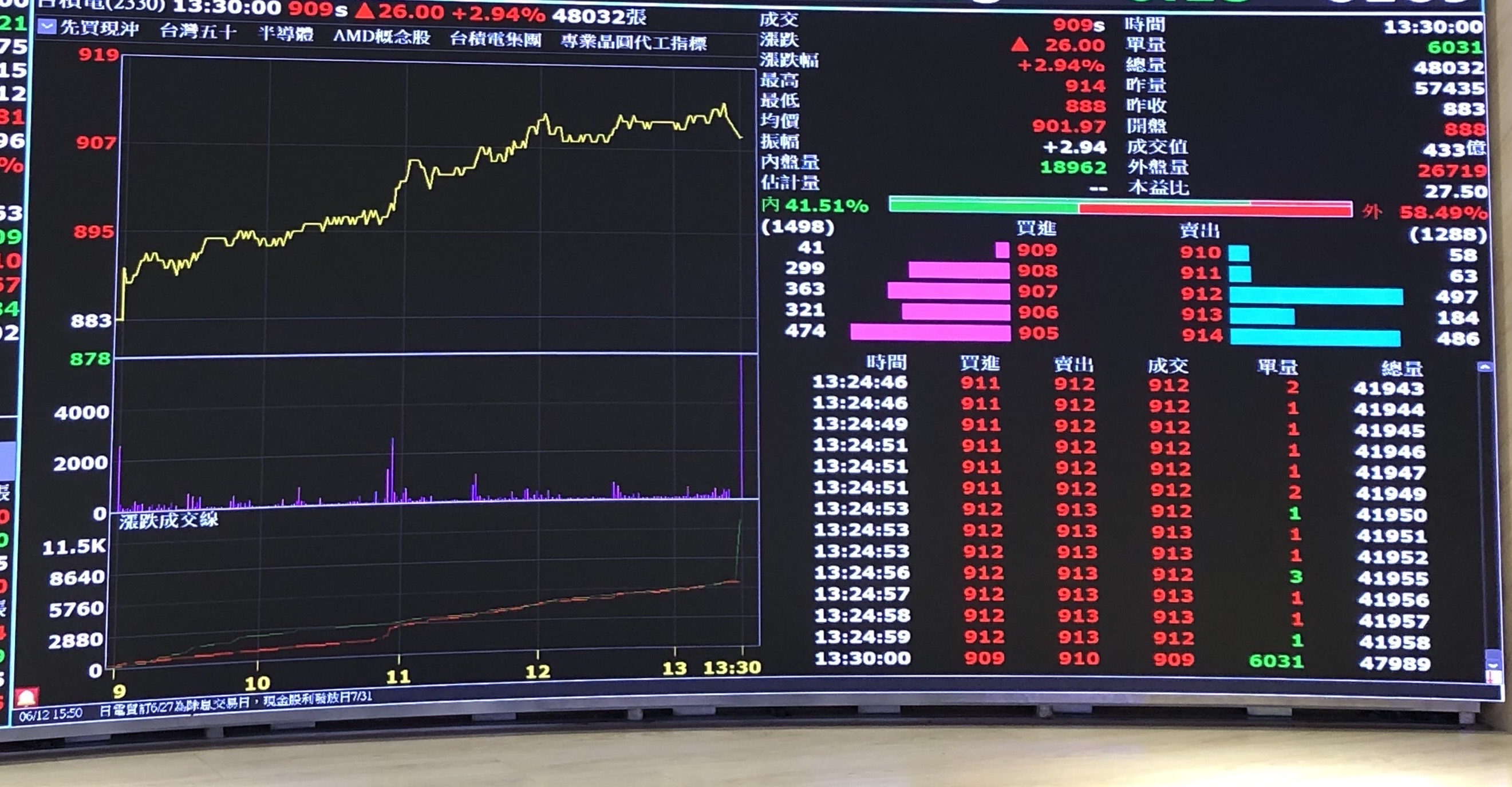 ▲圖說:台積電股價創914元新高。(圖/記者李錦奇攝影)