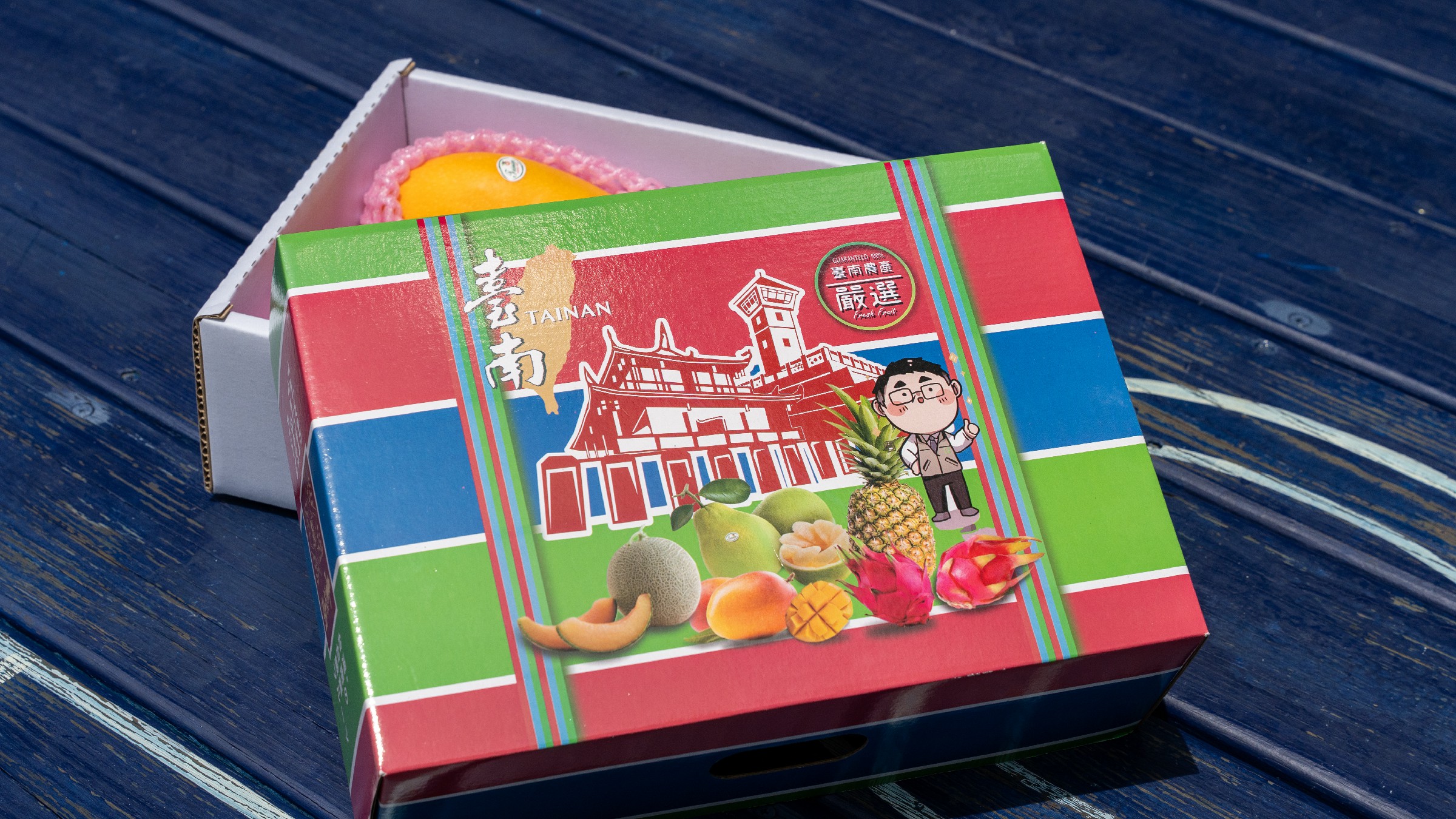 臺南市長黃偉哲指出,芒果禮盒多為單一品種,今年推出季節限定、最有台南味的綜合禮盒「台南芒果寶盒」,因應現代多為小家庭,也能滿足饕客們喜愛多元嘗鮮的口腹之慾。黃市長說明,視覺設計以「台南特有種」意象延伸,藍、綠、紅條紋的「笳芷袋」源自台南市後壁區,是時下年輕人及國外觀光客最愛的台味環保袋。今年適逢台南400,特別以經典笳芷條紋為主視覺,台南古蹟赤崁樓和安平古堡、台南水果五寶,側邊印上台南400圖騰,製成最有台南味的禮盒。