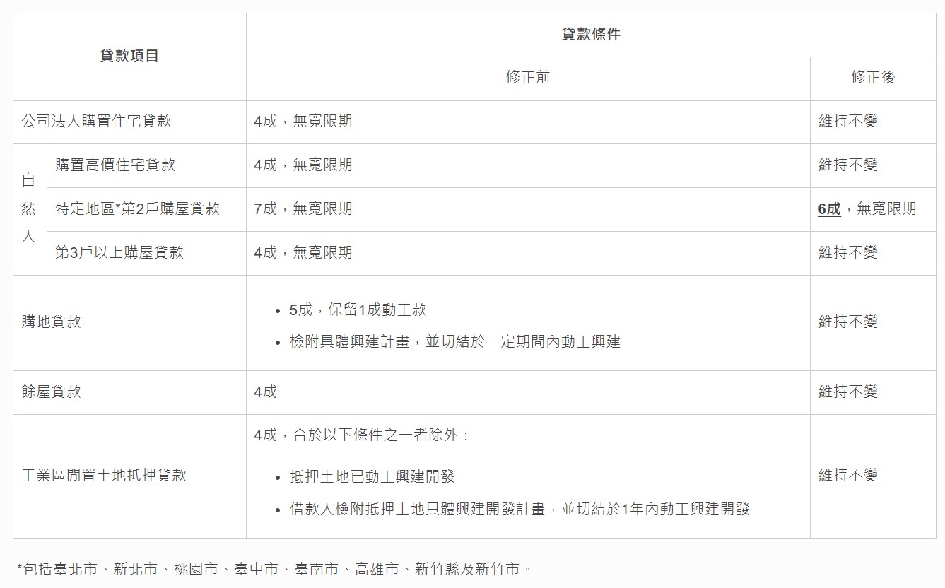 去年6月,央行宣布將自然人特定地區第2戶購屋貸款,由原本不管制,改為最高只能貸款7成。