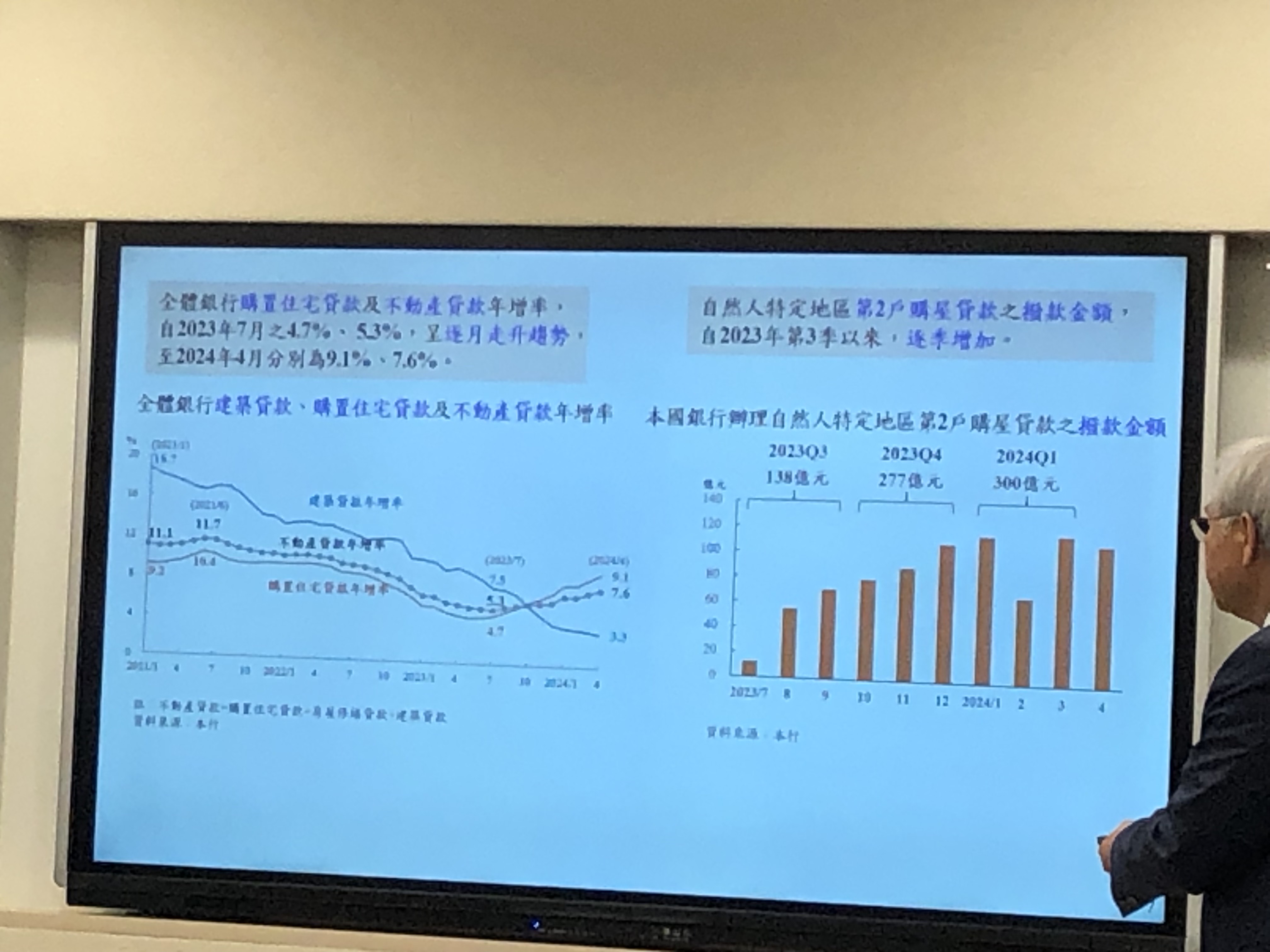 不動產貸款年增率,由去年7月的5.3%,升至今年4月的7.6%;購置住宅貸款年增率,則是由去年7月的4.7%,升至今年4月的9.1%。