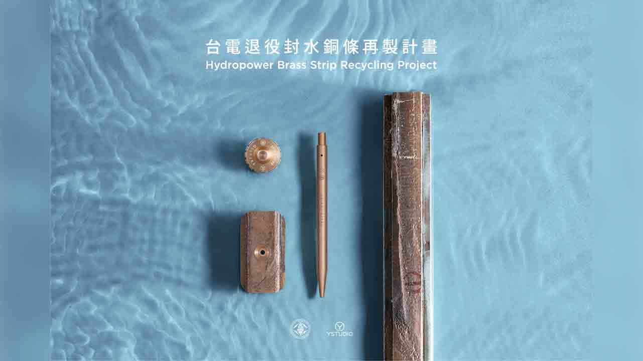 來自水力電廠的退役回收銅材「封水銅條」,也能化身文具精品!睽違2年,台電文創再出年度新品,利用日月潭的明潭、大觀水力電廠抽蓄機組獨有的「封水銅條」退役回收材料,與台灣文具設計品牌《物外YSTUDIO》聯名,歷時2年研發,推出日月潭水力筆、筆座和桌上小物轉子造型陀螺,今日於台電文創電商平台限量上市。