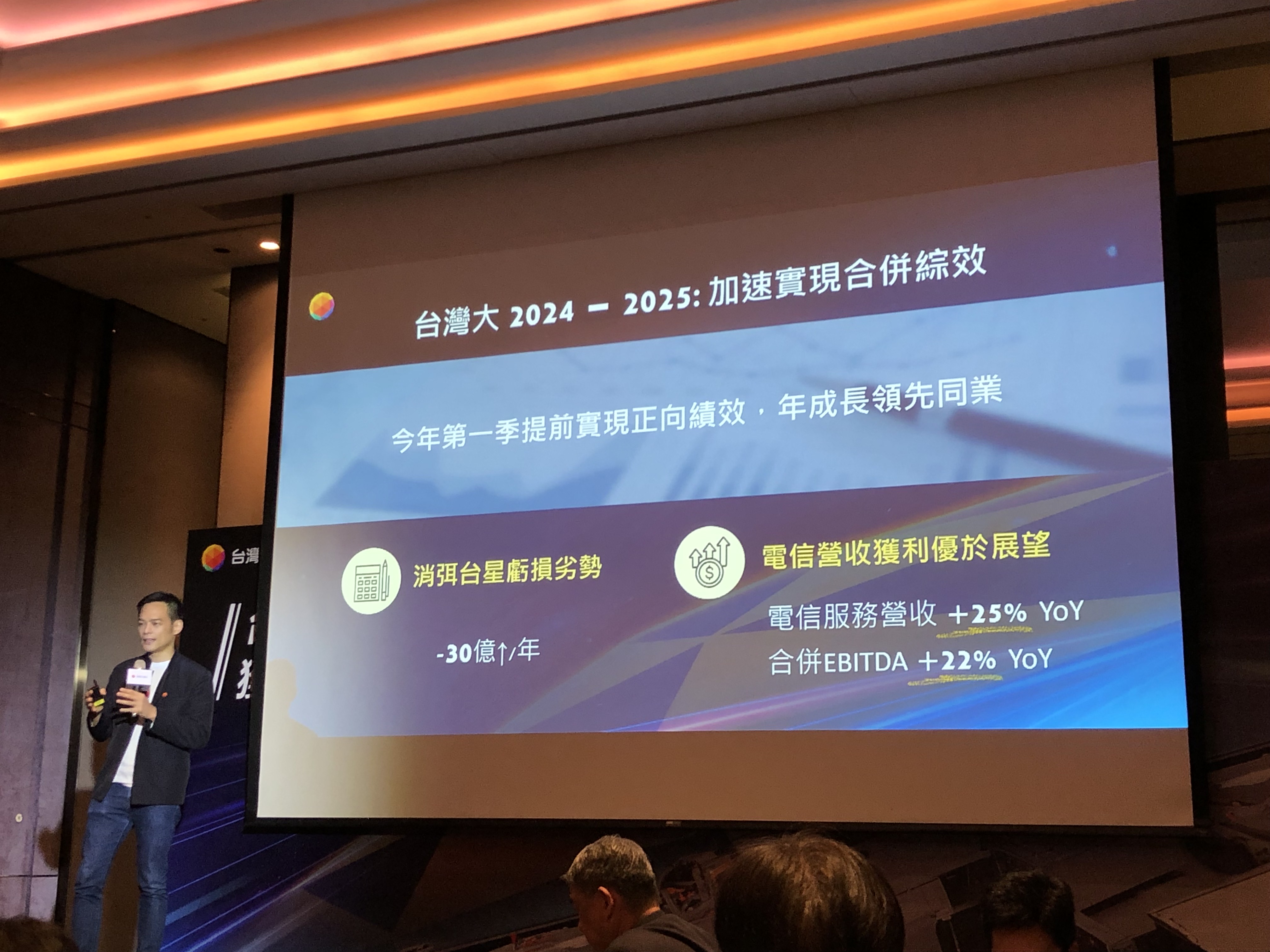 台灣大哥大財務長兼發言人張家麒(如上圖,記者李錦奇攝影)表示,整併台灣之星後,Q1總營收成長12%,稅後淨利年成長9.3%,如果拿掉MOMO的部分,Q1營收更成長25%,「可以說合併台灣之星,沒有被拖累,甚至接手後,台灣之星已經轉虧為盈,發揮綜效。這才是剛開始,等今年底網路整併完成,綜效將全面反映在獲利表現,預計2025年獲利將加速成長,自由現金流量持續增長,明後年會享受整年綜效,今年數字好,期待明年會更好。」