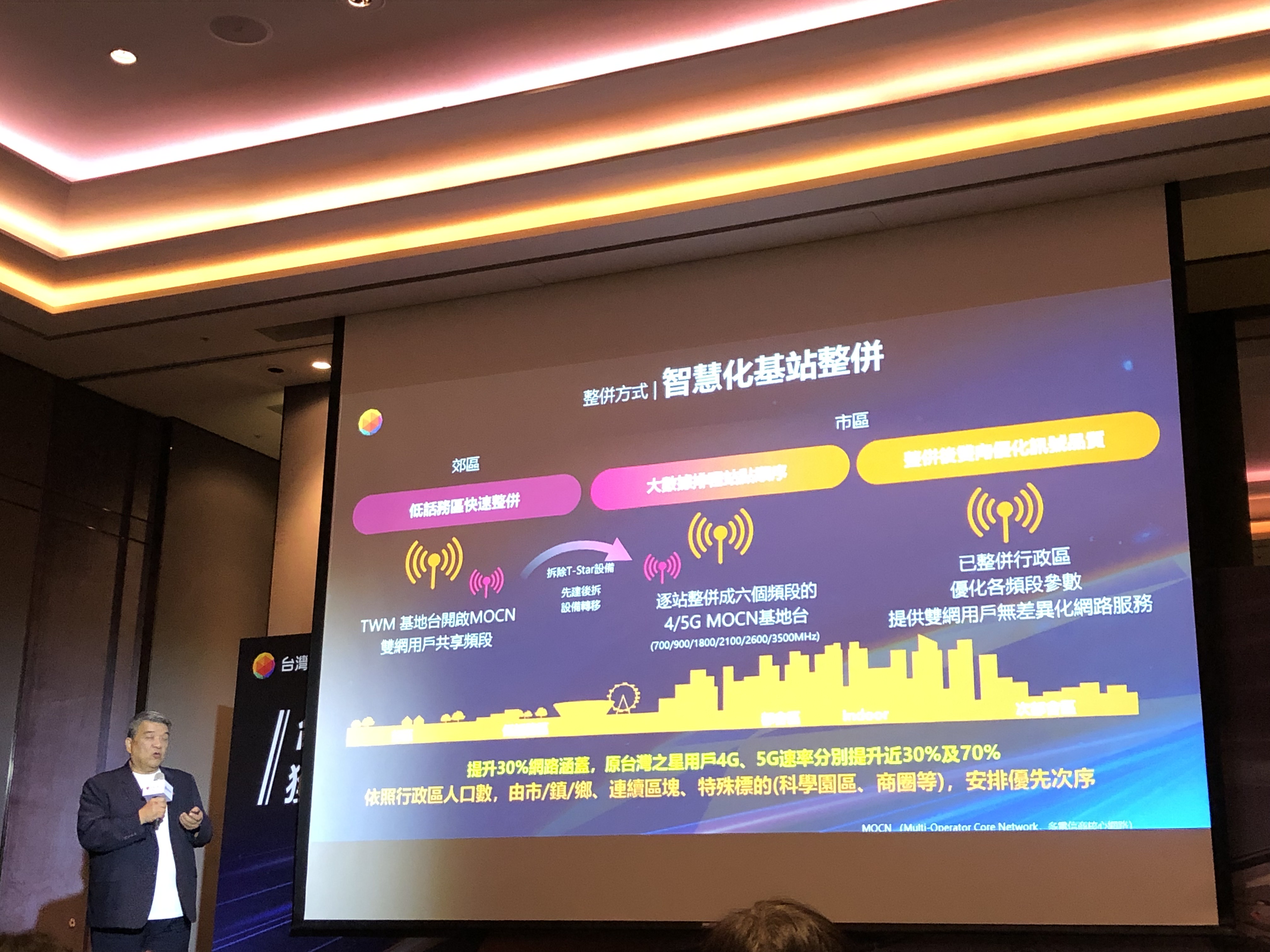 台灣大哥大技術長兼法規長揭朝華(如上圖,記者李錦奇攝影)表示,規劃今年11月底前完成9300座基地台整合作業,目前進度大幅超前4個月,已完成252個行政區的基地台整併,也因進度超越原先規劃,2025年因此提前實現整併效益之最大化。