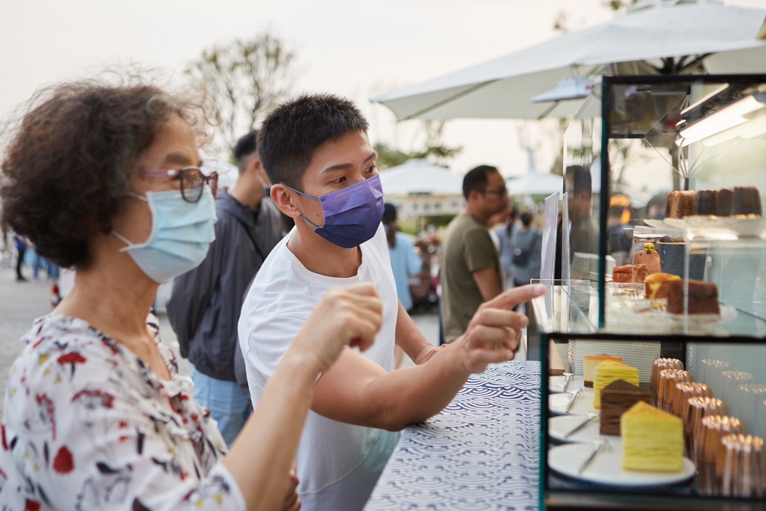 ↑圖說:攤車品牌經營者向有興趣民眾介紹攤車販售的創意甜點。(圖片來源:高雄市青年局提供)