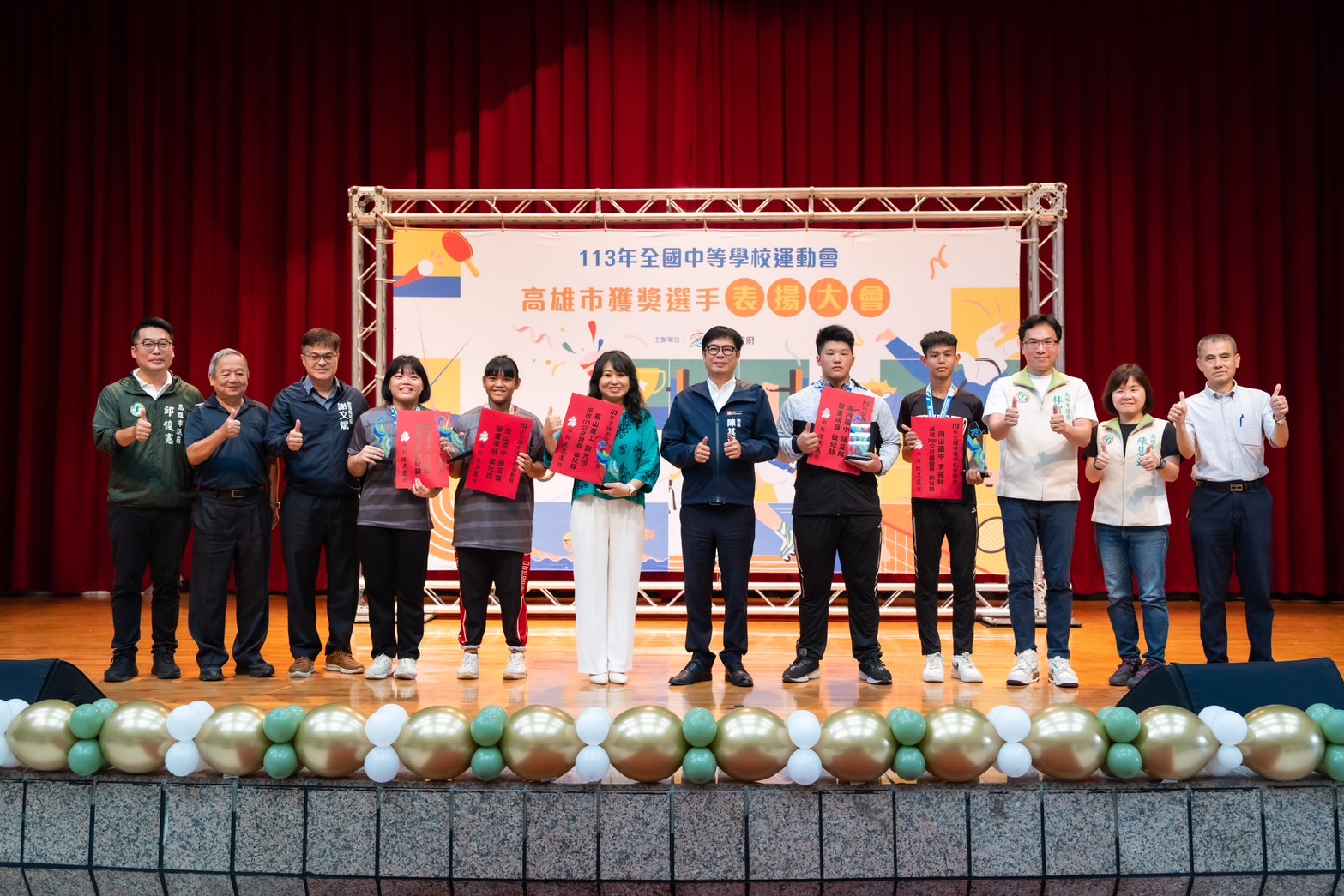 高雄市政府教育局6月20日在鳳山行政中心大禮堂舉行「113年全國中等學校運動會高雄市獲獎選手表揚大會」,市長陳其邁到場頒獎表揚代表隊的優異成績,今年選手獎勵金及訓練輔助金總額達到2004萬3000元,並同時宣布明年獎勵金將加倍,激勵高雄體育之光未來有更加精采的表現。