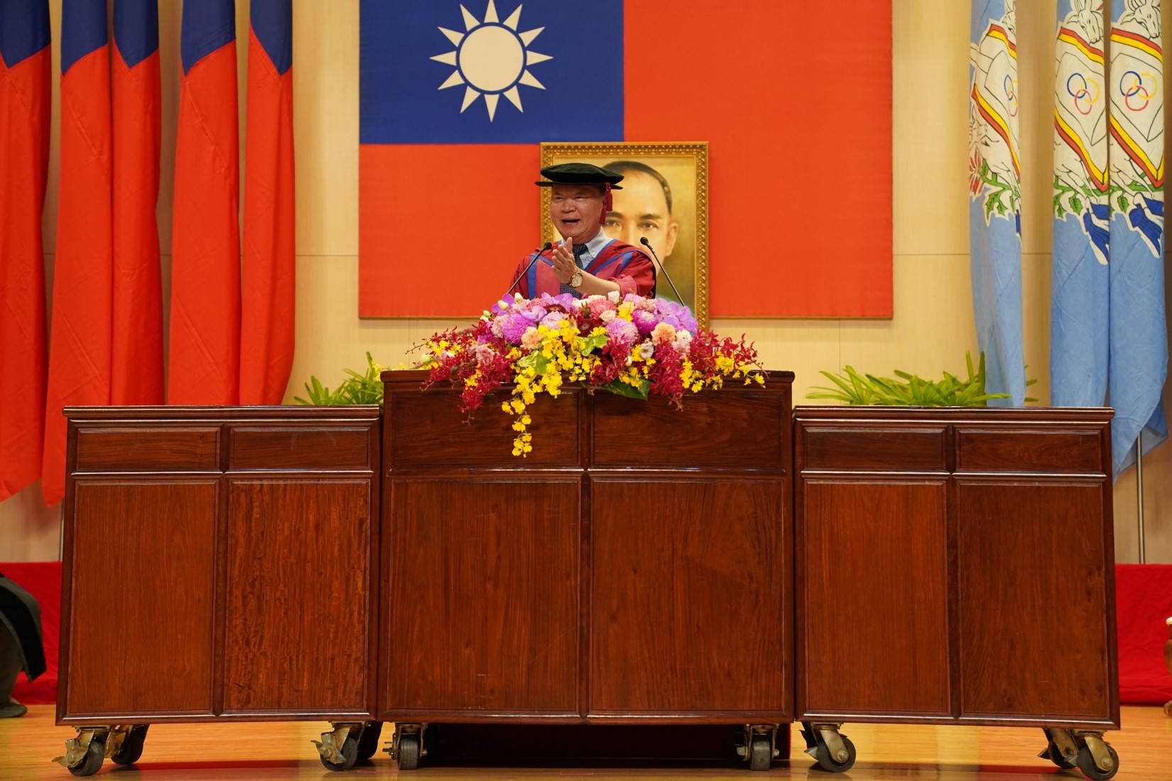↑圖說:校長王政彥以「開路,邁向康莊大道」期勉畢業生。(圖片來源:高師大提供)