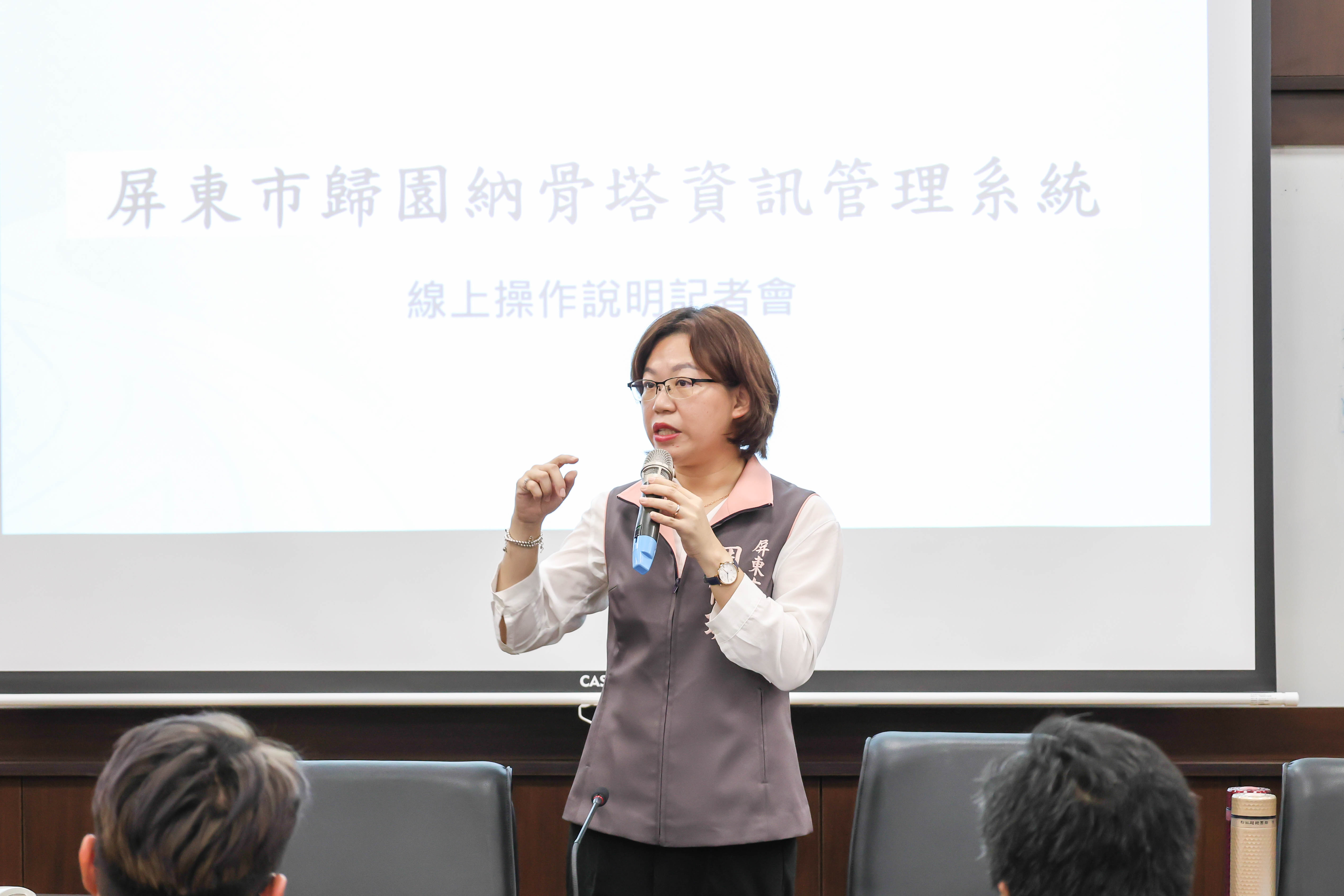 圖說:周佳琪表示歸園納骨塔資訊管理系統提供完善殯葬服務。(圖片來源:屏東市公所提供)