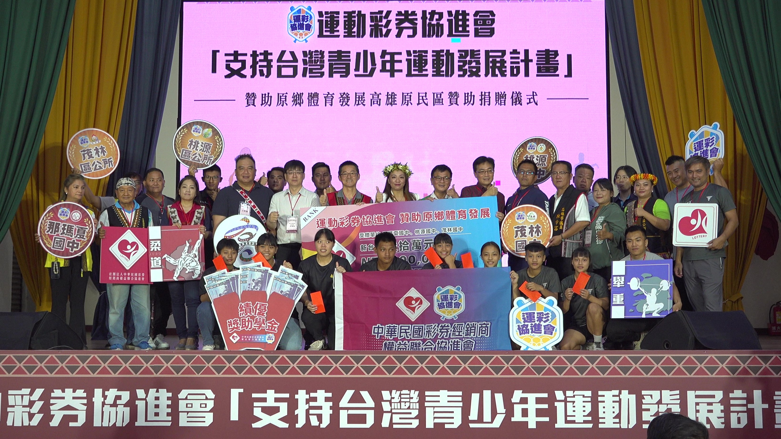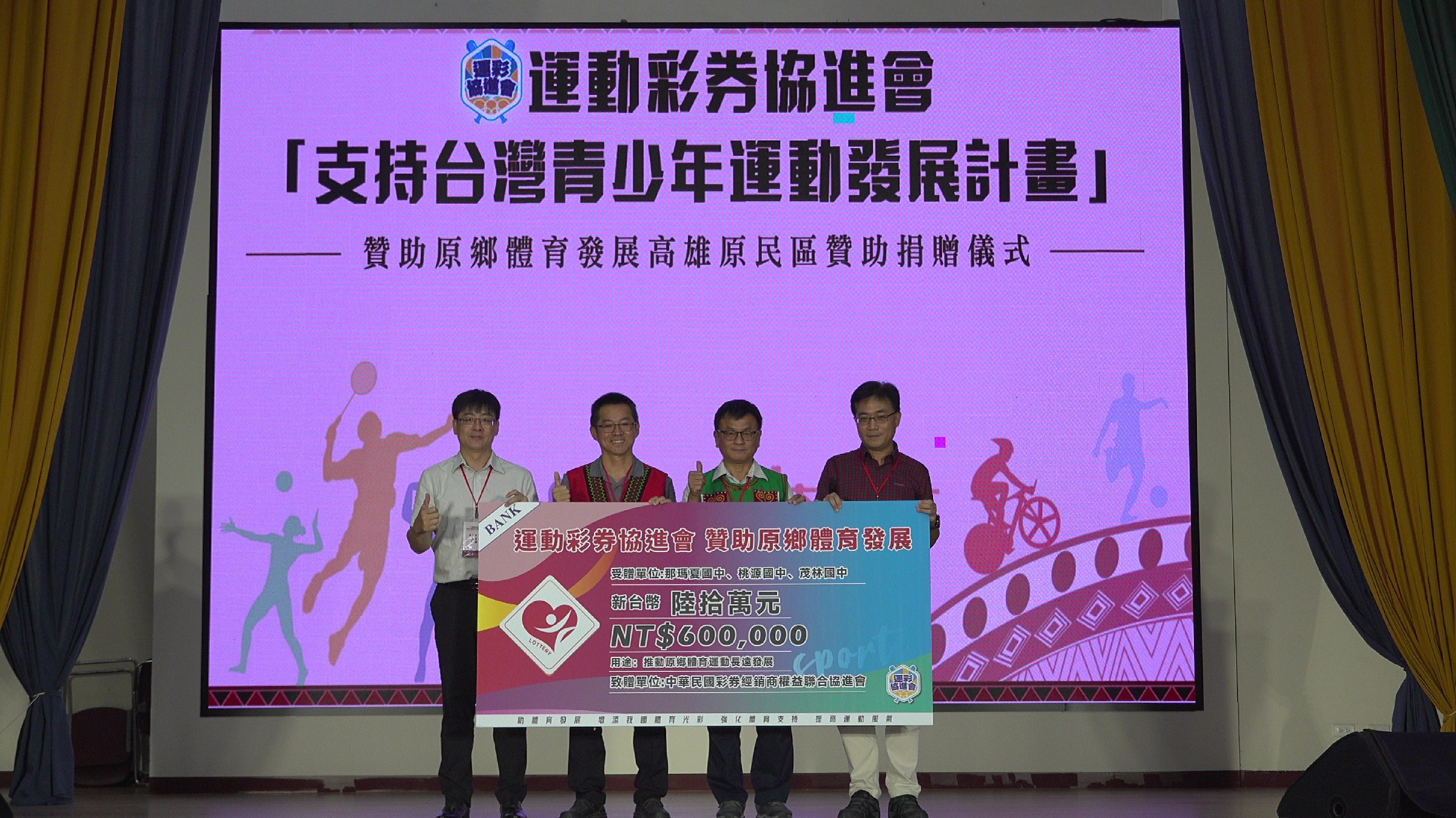 為推動台灣體育環境健全發展,支持青少年及原民偏鄉體育發展,中華民國彩券經銷商權益聯合協進會今年啟動 「支持台灣青少年運動計畫」,繼贊助雄中羽球 隊、鼎金國中、左營高中擊劍隊之後,繼續支持高雄原民區國中體育發展,並提供高雄優秀原民學生運動員獎勵金,總金額達到 60 萬元,在6月26日於高雄市原住民故事館舉行捐贈儀式,並頒發全中運表現優異原住民選手獎勵金。高雄市原民會主委阿布斯、高雄市議員陳幸富、區長以及多位族群委員也都前往與會,感謝協進會對高雄原住民體育的支持。