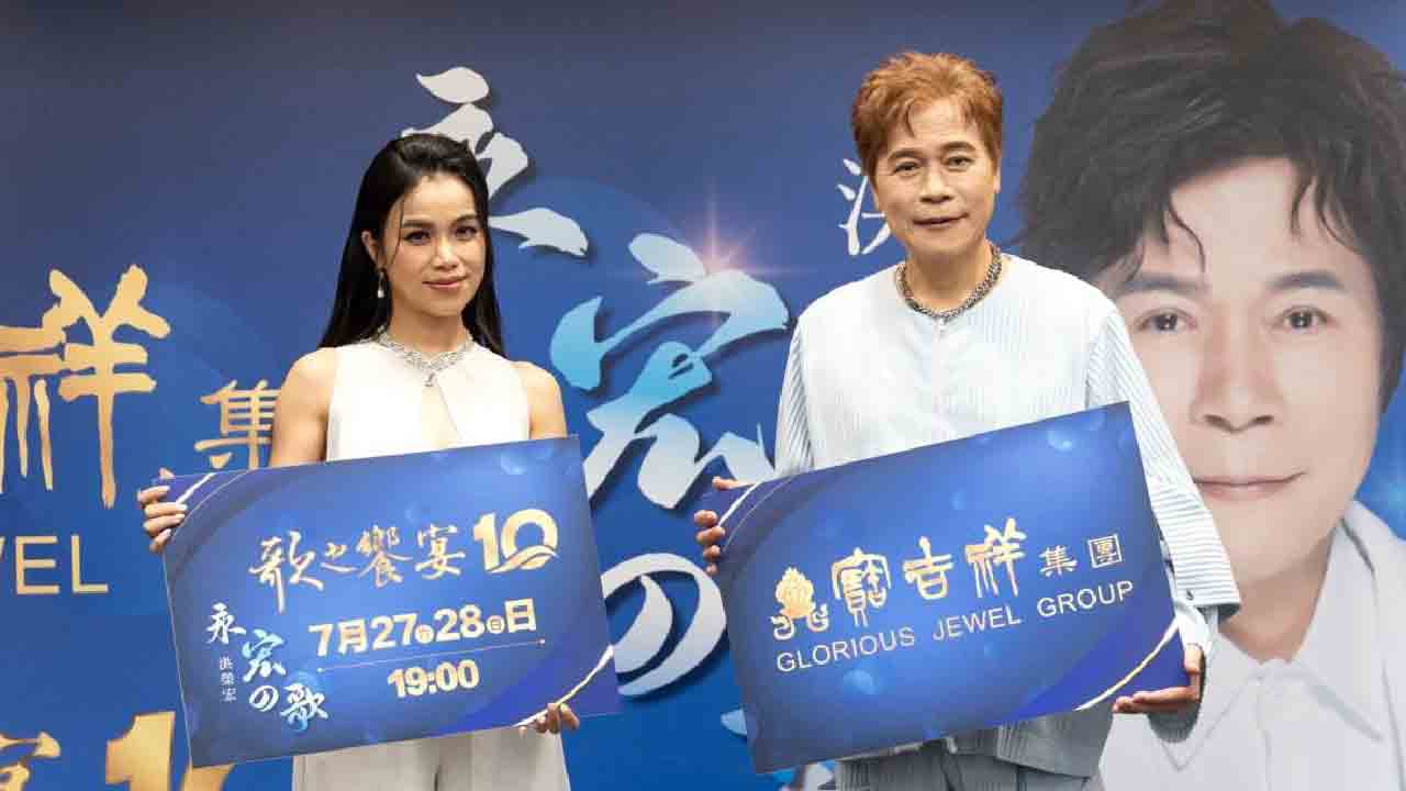 ↑圖說:台語天王洪榮宏攜手演唱會嘉賓林芯儀出席《歌之饗宴10-永宏の歌》宣傳記者會。(圖片來源:寶吉祥集團提供)