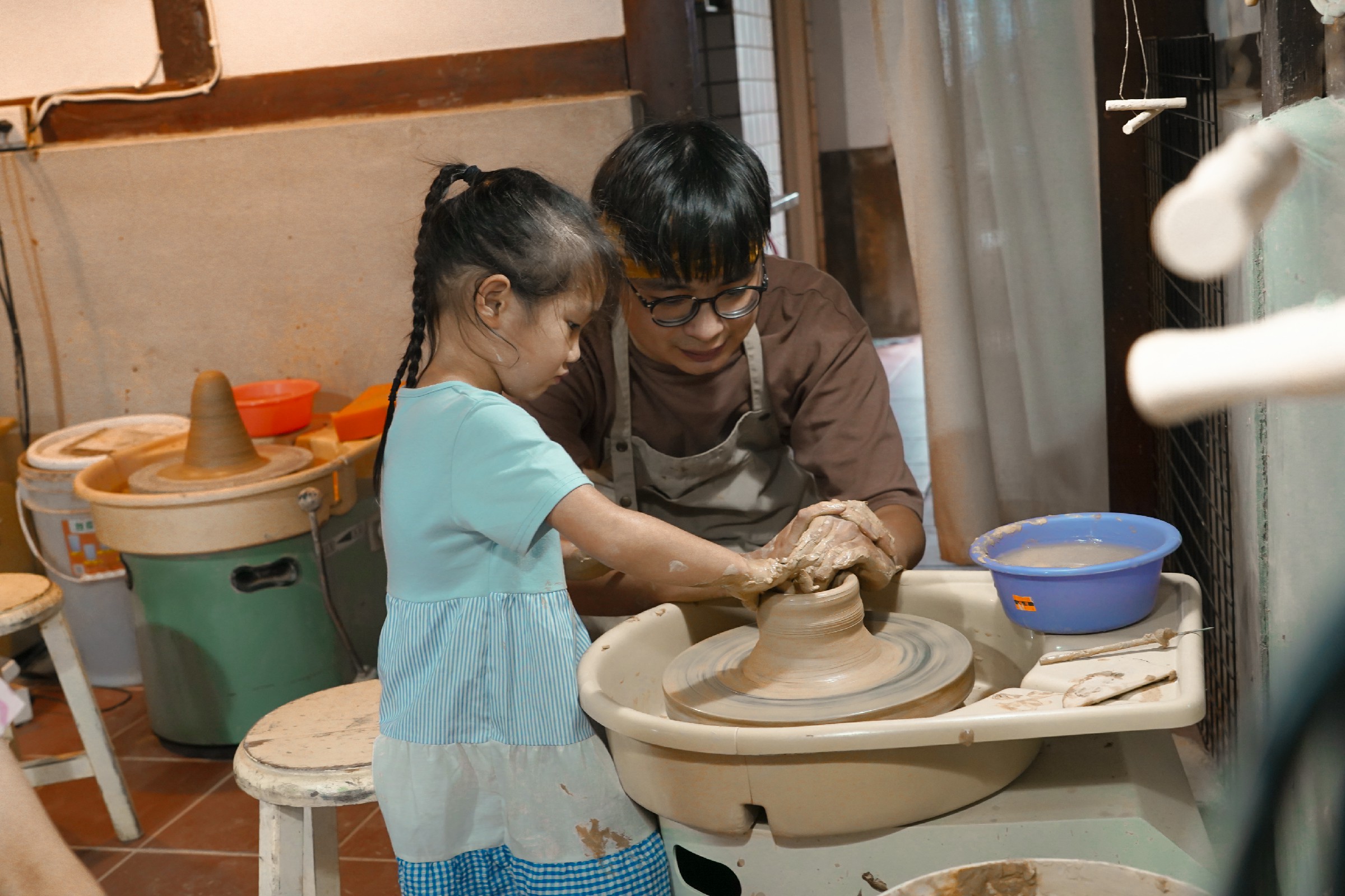 ↑圖說:4歲以上的小朋友可以到「拾土陶藝工作室」動手做手拉坏(圖片來源:嘉義縣文觀局提供)