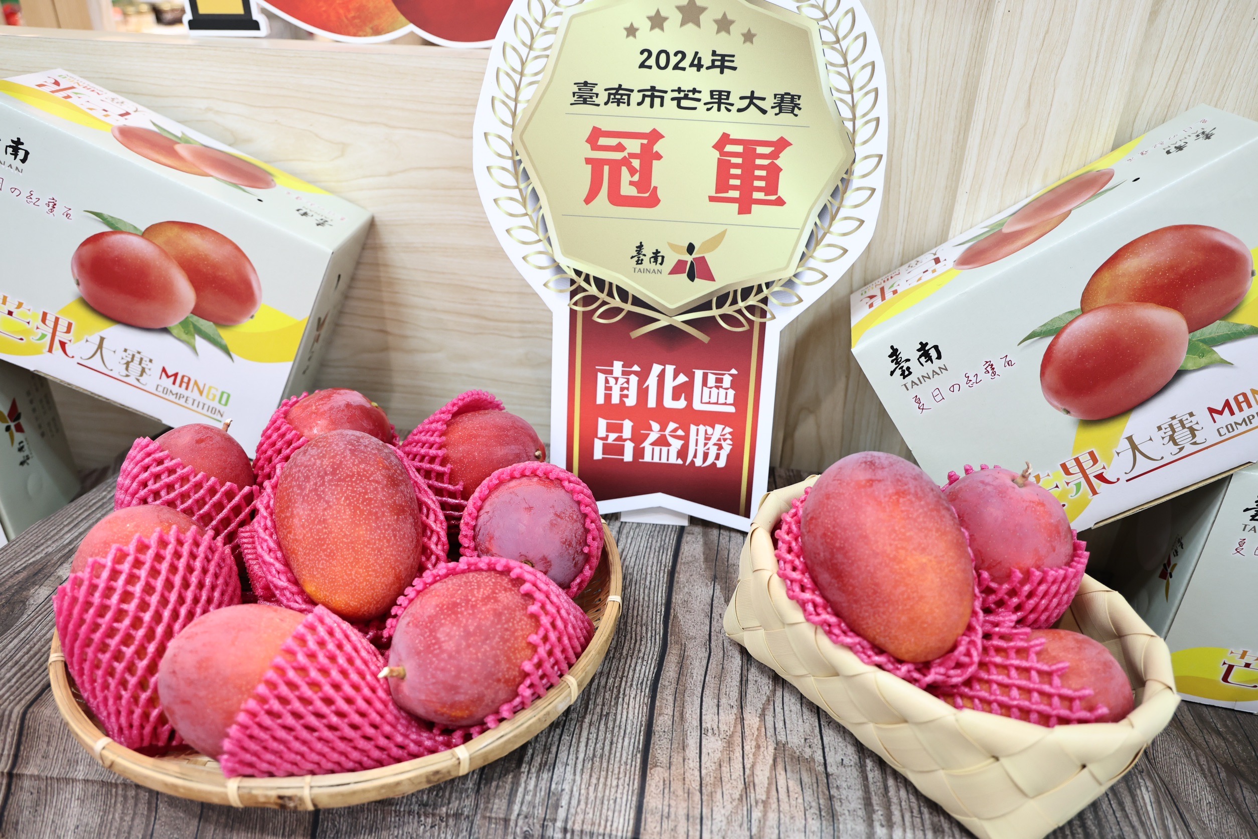 ↑圖說:2024年臺南市愛文芒果評鑑大賽結果出爐,由南化區農民呂益勝脫穎而出(圖片來源:臺南市農業局提供)