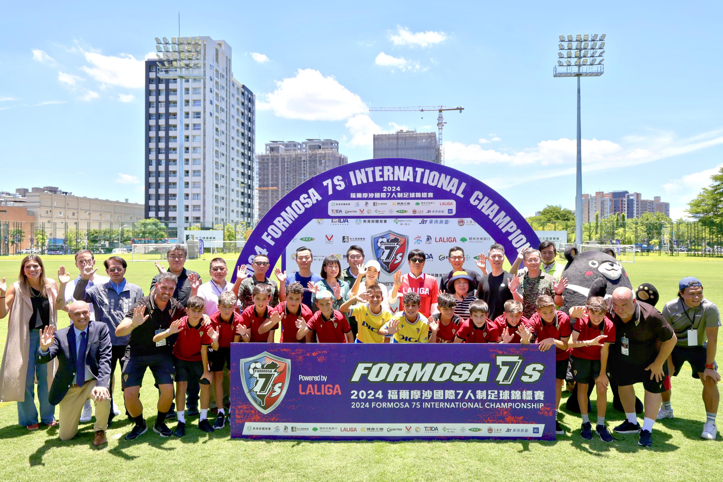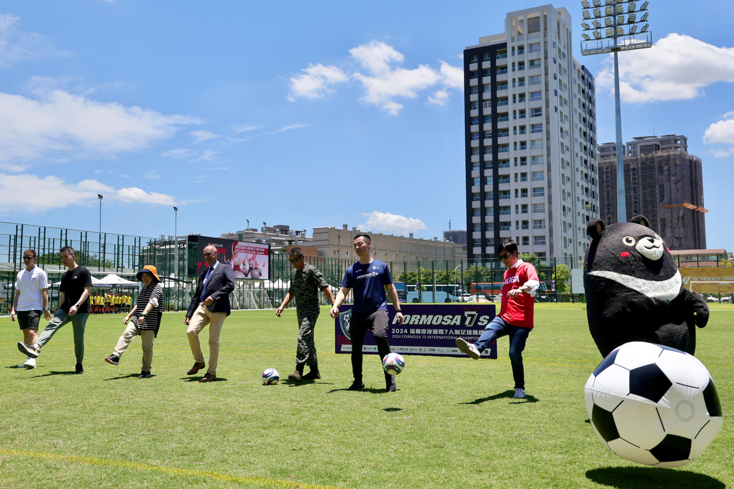 第一屆福爾摩沙國際七人制足球錦標賽7/3日起一連五天在高雄盛大舉行,包括地主臺灣及西班牙、日本、香港及菲律賓共97隊參賽,隊職員逾2300人,加上觀賽親友,總參與人數逾6000人。開幕式上,西班牙小將還特別指導高雄市長陳其邁踢足球。陳其邁表示,期待藉Formosa 7s國際足球錦標賽讓足球與高雄美好連結,和世界交朋友。