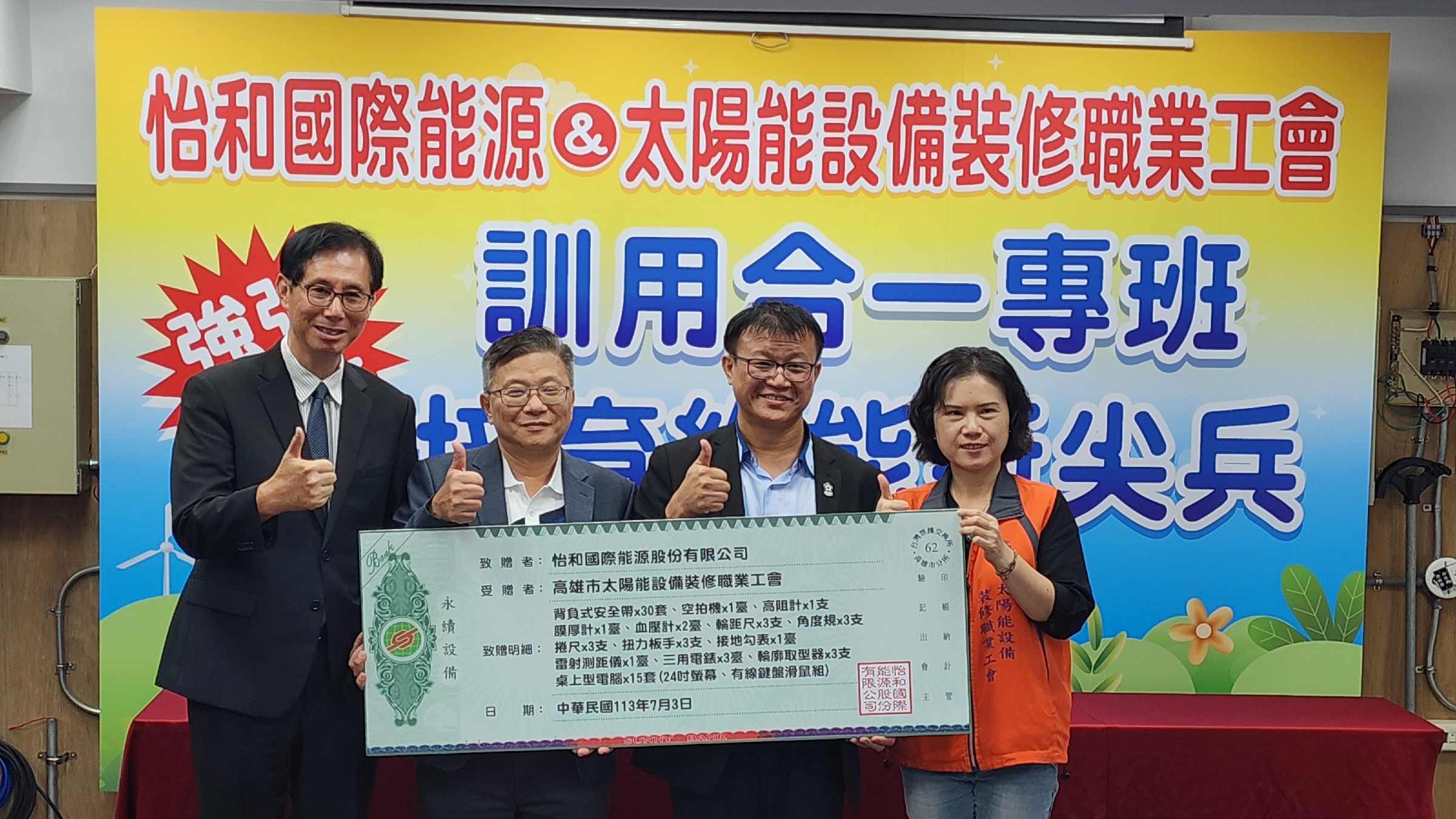為解決台灣綠能產業人才短缺問題,怡和國際能源股份有限公司與高雄市太陽能設備裝修職業工會共同開辦「太陽光電系統監造技能專班」與「太陽光電系統機電設計專班」等兩梯訓用合一專班。經專業訓練後投入時下明星產業-再生能源產業。該專班提供專業賦能的實用課程,推出涵蓋太陽能光電系統設計、監造、安裝及維護等單元的訓用合一課程,另外加碼提供全新個人防護裝備、空拍機、電腦教學設備、AUTOCAD軟體與實際案場觀摩等資源,確保學員比照實際就業場域,隨學隨用,順利挺進太陽能產業菁英行列。