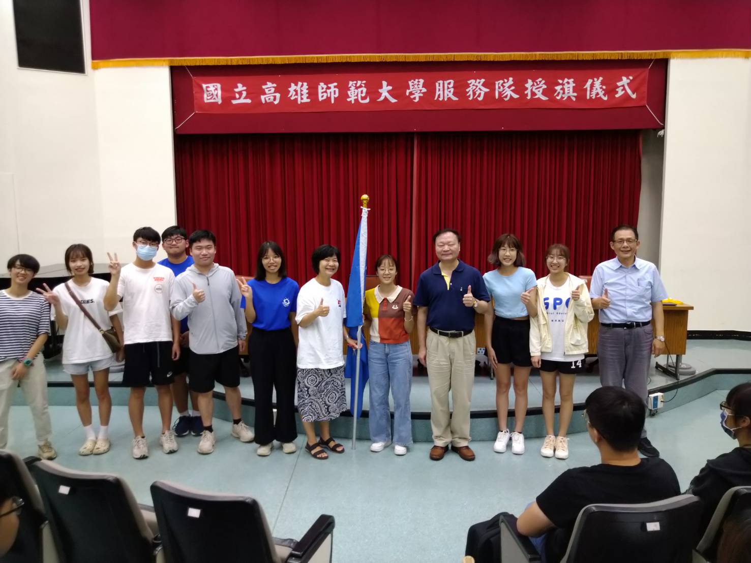 國立高雄師範大學在每年寒暑假,學生都會自組服務團隊,前往各地國中小學辦理營隊,今年也不例外,113年高師大暑期服務隊已經整裝待發,安排跨縣市辦理國中小營隊。今年度共計有三個隊,出發前往屏東縣泰武鄉等地服務。校長王政彥為鼓勵同學回饋社會及自發組隊的用心,特別授旗給服務隊同學,不只肯定同學取之社會也回饋社會的心,更鼓勵出隊同學藉由出隊貢獻所學,讓參與社團更具意義與價值。