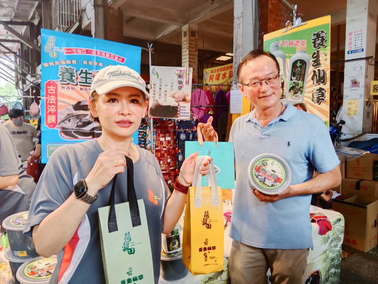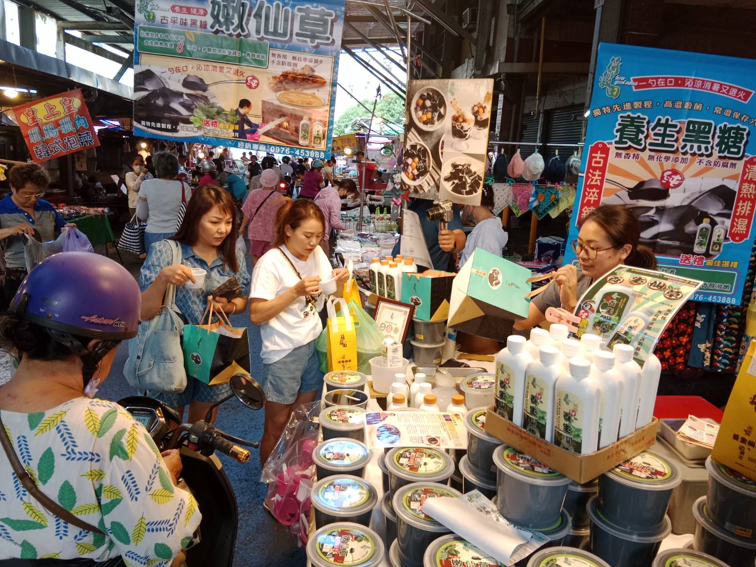 ↑圖說:嫩仙草和濃萃在市場造成婆婆媽媽搶購。(圖片來源:韓文明拍攝)