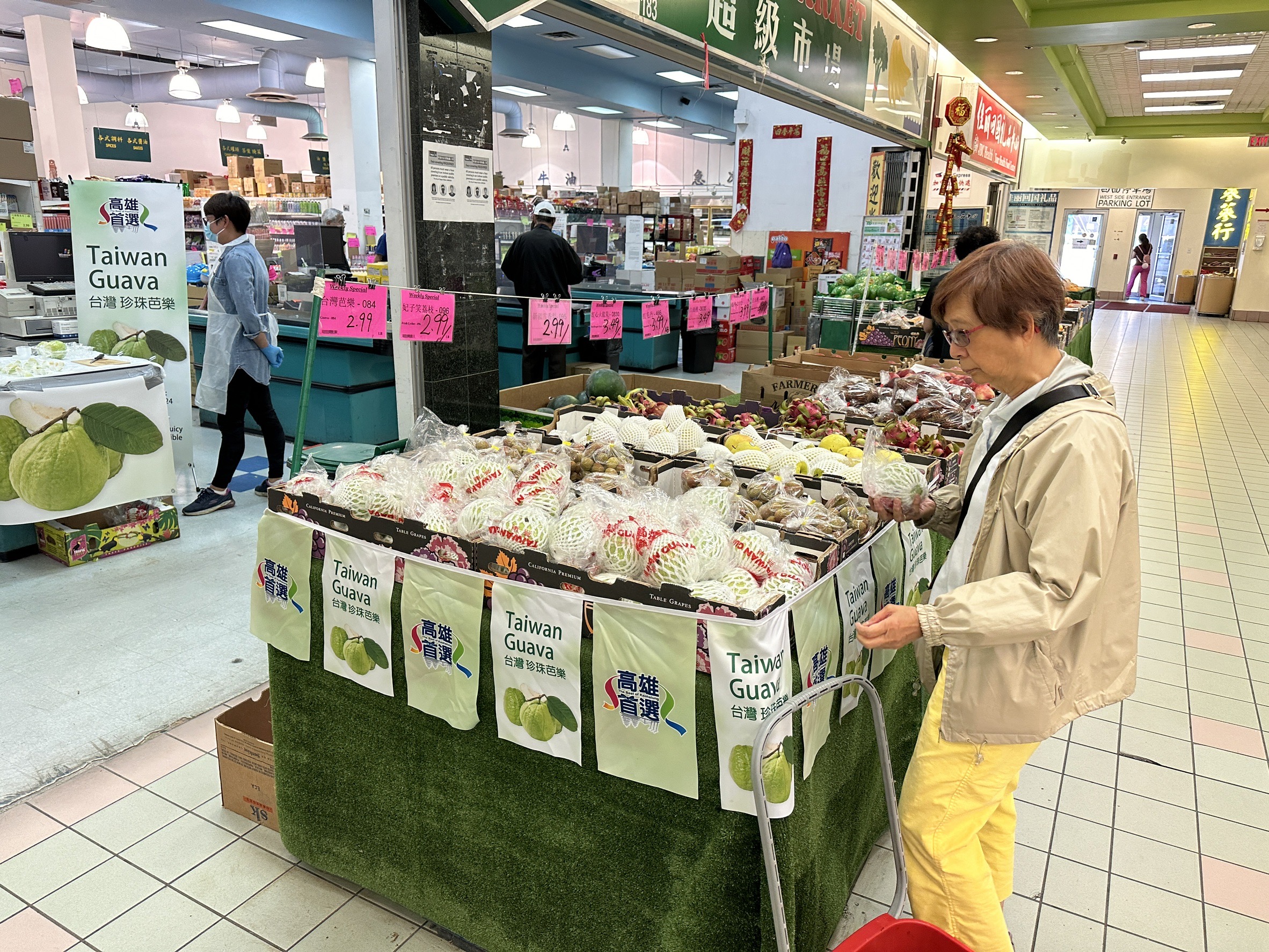 全台芭樂市場以高雄為市占率第一,今年截至6月底於國內批發市場供應量已上看8000公噸,國外市場需求同樣熱烈,統計至5月底外銷量達740公噸,較去年同期成長六成,外銷遍布北美、新馬、港澳等區,尤其北美市場更是供不應求。以國內芭樂市場極具指標性的燕巢區農會為例,過去專營國內市場,今年也在台北農產公司牽線下首次出貨北美外銷市場。為持續提升高雄芭樂於北美市場知名度,高市府農業局偕同貿易商於加拿大新鮮100超市(Tops Supermarket)辦理試吃活動同時在當地電商平台上架,除了廣受消費者歡迎的珍珠芭樂,還有少見的紅心芭樂,當地華僑蜂擁而至,以購買支持高雄芭樂。