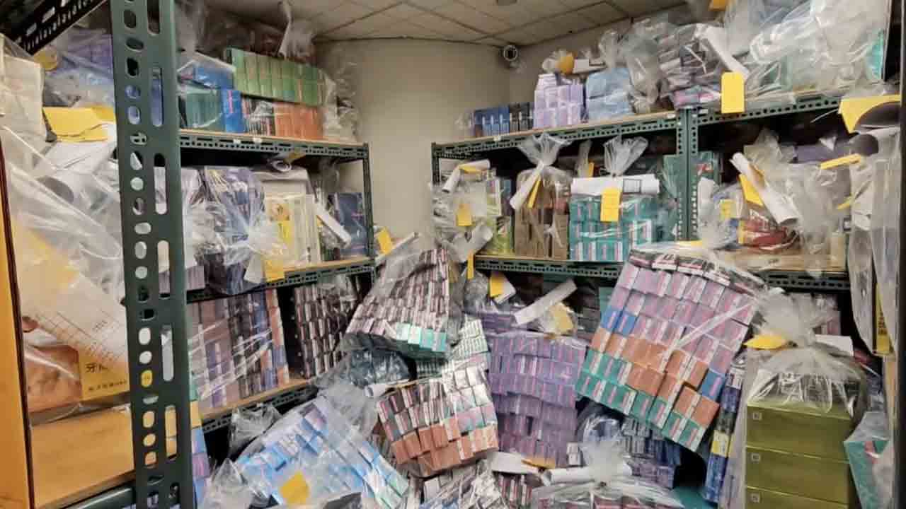 ↑圖說:立委黃健豪質詢衛福部,海關扣9萬多條加熱菸引發觀光客及民眾抱怨。圖為海關倉庫。(圖片來源:民眾提供)
