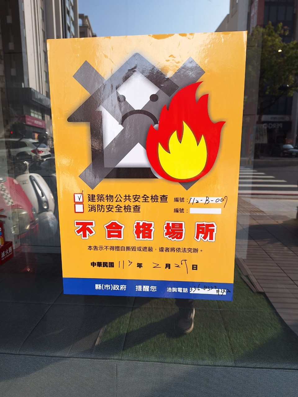 ↑圖說:稽查不合格場所將張貼“不合格告示”(圖片來源:高雄市工務局提供)