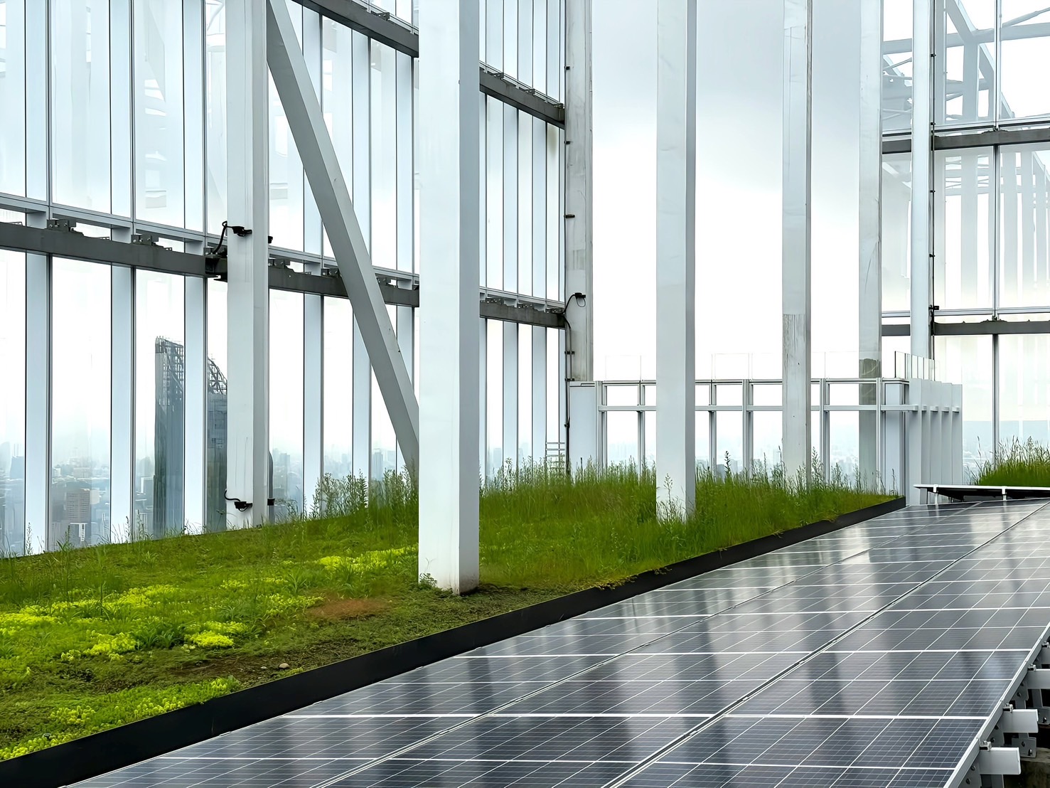 ▼圖說:富邦人壽大樓樓頂,裝設太陽板,也有綠化植栽。(圖/富邦人壽提供)