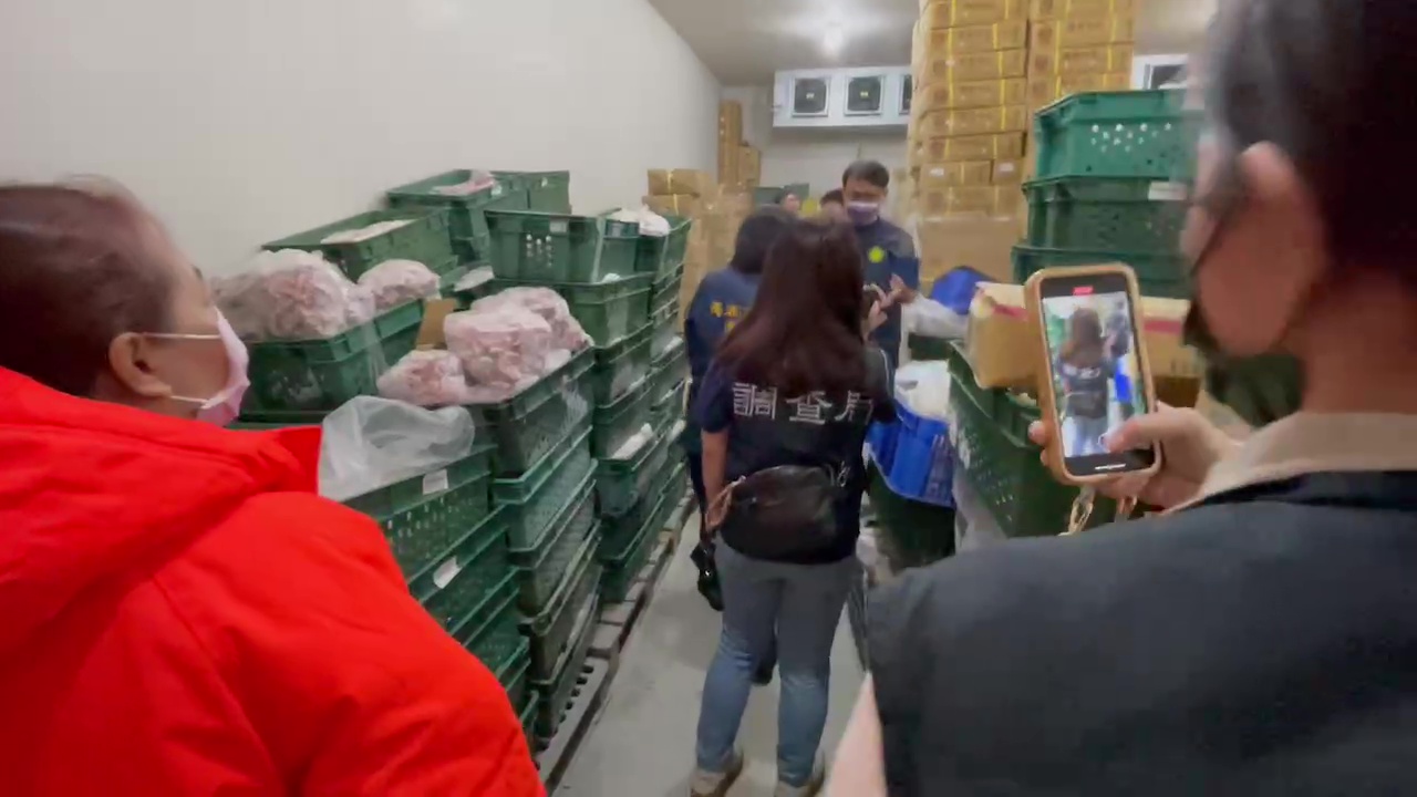 ↑圖說:檢調指揮衛生局、高雄市調處、高雄市刑大等單位前往柏昇冷凍食品公司搜查。(圖片來源:高雄市衛生局提供)