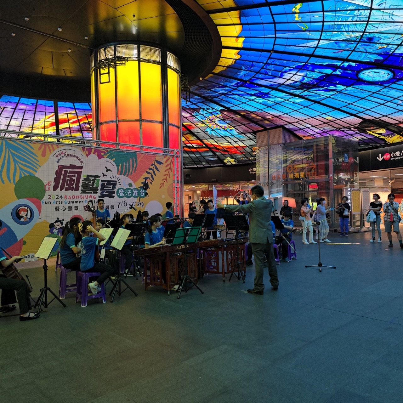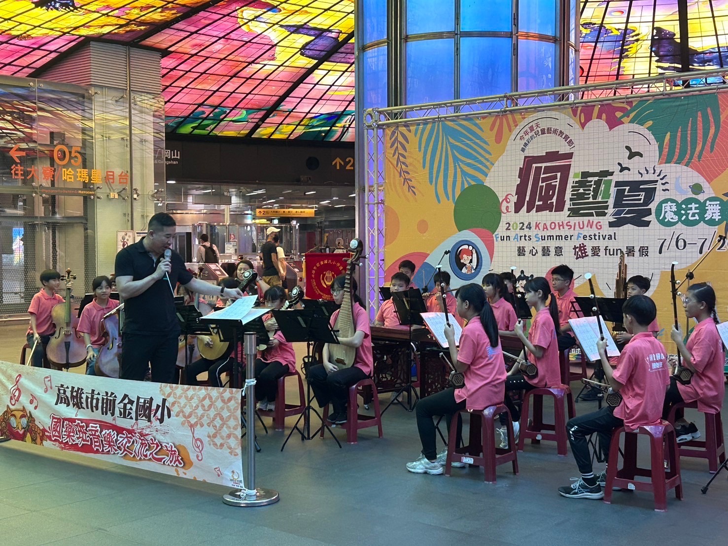 ↑圖說:「2024高雄瘋藝夏」11-12日於美麗島捷運站光之穹頂演出,前金國小國樂團首先登場。(圖片來源:高雄市政府教育局提供)