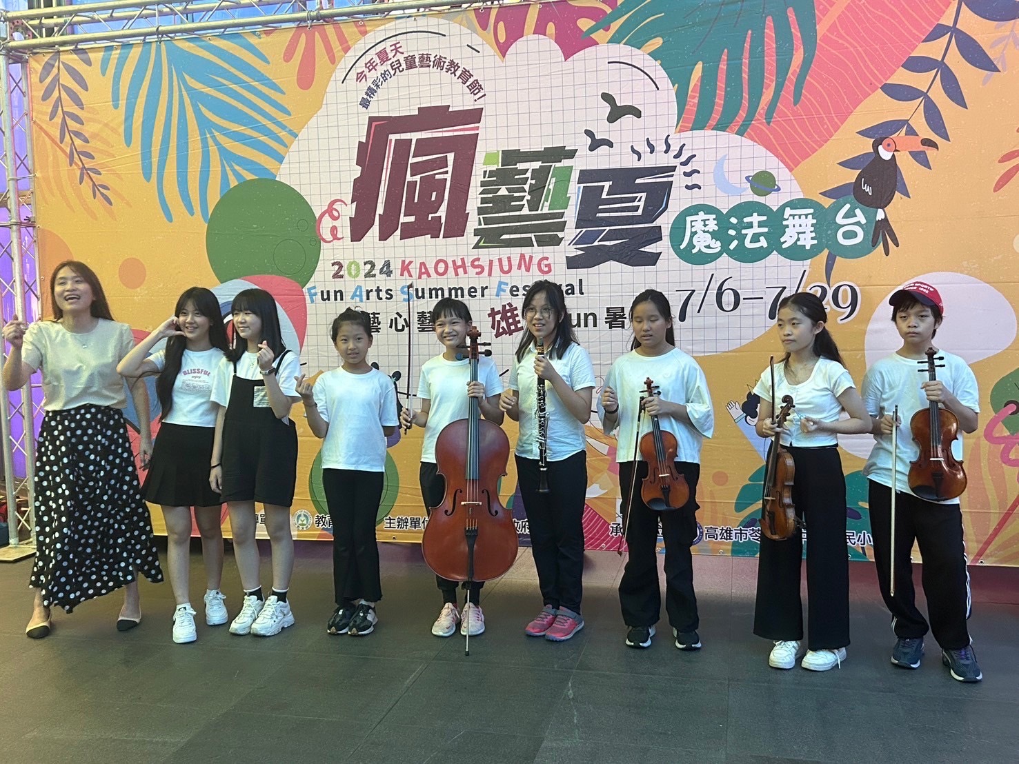 ↑圖說:信義國小弦樂團於11日「2024高雄瘋藝夏」帶來許多中西經典的樂曲。(圖片來源:高雄市政府教育局提供)