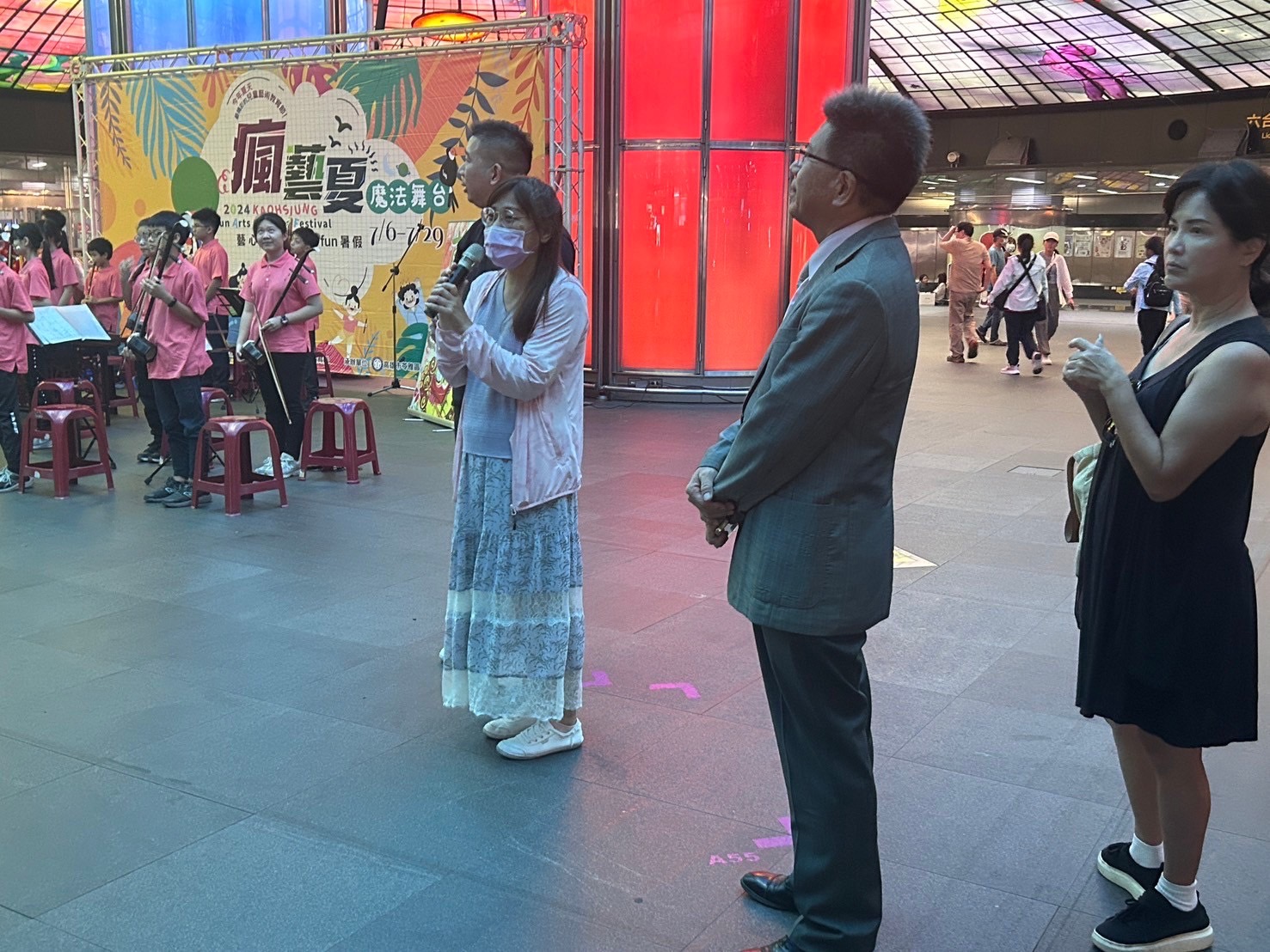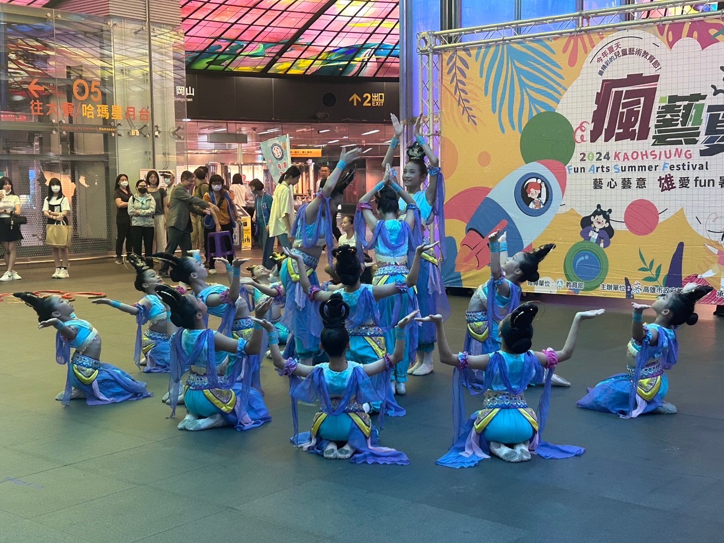 「2024高雄瘋藝夏」第二站演出來到美麗島捷運站光之穹頂,演出學校們於7月11日至12日將帶來精彩的演出及市民同樂,享受豐盛的藝術饗宴。高雄市政府教育局國小科陳培綾專員到場感謝前金國小、中正國小、信義國小、苓雅國中、五福國小和鳳山國小的校長、教師及學生的努力及熱烈地演出,並感謝家長們的支持與鼓勵,肯定家長們的支持是孩子成長的重要動力。「2024高雄瘋藝夏」今年共有來自11所學校藝術才能班的500位學生參與。表演範疇涵蓋了音樂和舞蹈,每位學生都展現了藝術的才華和努力練習的成果。