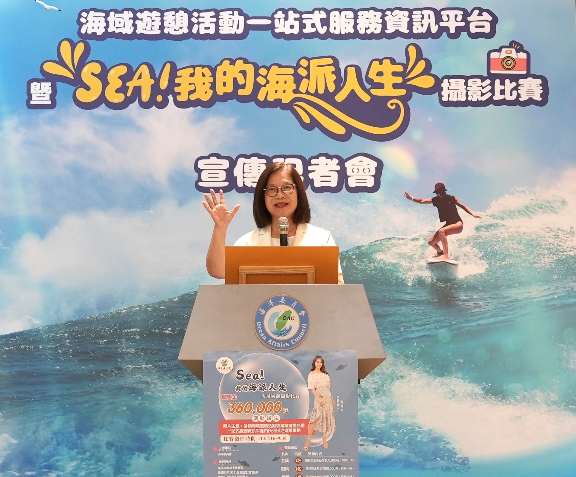 ↑圖說:管碧玲宣傳一站式平台及攝影比賽。(圖片來源:海委會提供)