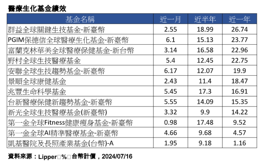 江宜虔分析,隨著醫療服務公司訂價能力恢復,醫療服務產業成本上升將逐漸轉嫁到售價上,有利提升獲利率,此外,生物科技及生命科學工具等產業近期獲利預估值已見向上修正趨勢,以及聯準會降息機率大增、資金面有利生物科技類股,看好醫療產業今年下半年將逐漸脫離疫情期間獲利高基期的負面效應,獲利年成長狀況將出現明顯好轉。