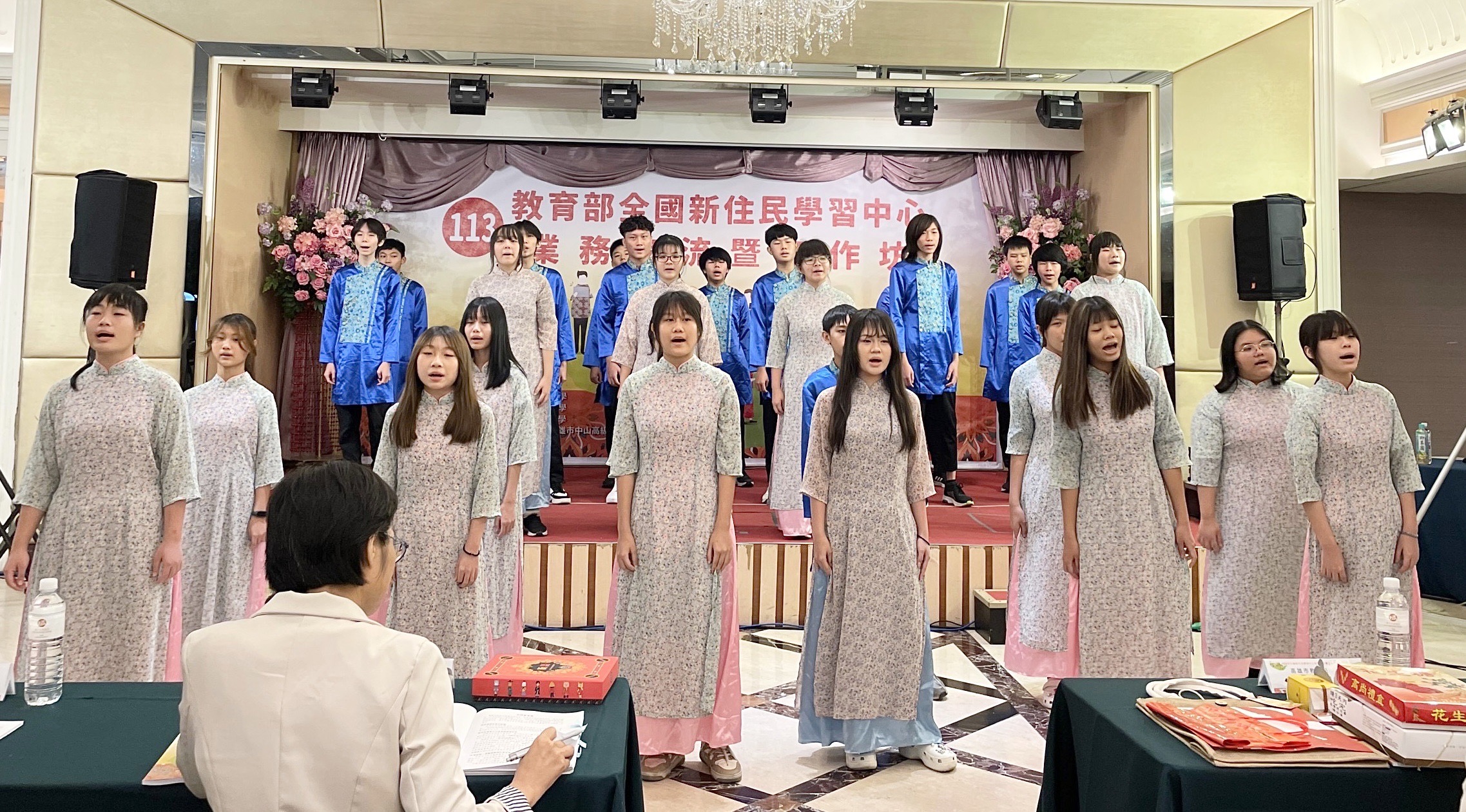 活動由高雄市圓富國中的新二代合唱團以越南、印尼歌曲帶來精彩演出,熱情奔放的東南亞旋律伴隨孩子們自信與嘹亮的歌聲,引領全場來賓體驗族群融合之美,也見證偏鄉學校推動新住民教育的努力成果。現場也邀請玫瑰墓以「演講音樂會」的形式,利用感人肺腑的歌聲,帶領大家走入新住民的生命故事,勾勒多元文化尊重之聲。另透過新住民藝能協會陳琳鳳理事長在臺二十四年的生命故事分享、高雄市港和國小新住民學習中心實務經驗分享,讓與會人員發掘新住民終身教育的創新思維與潛在優勢。