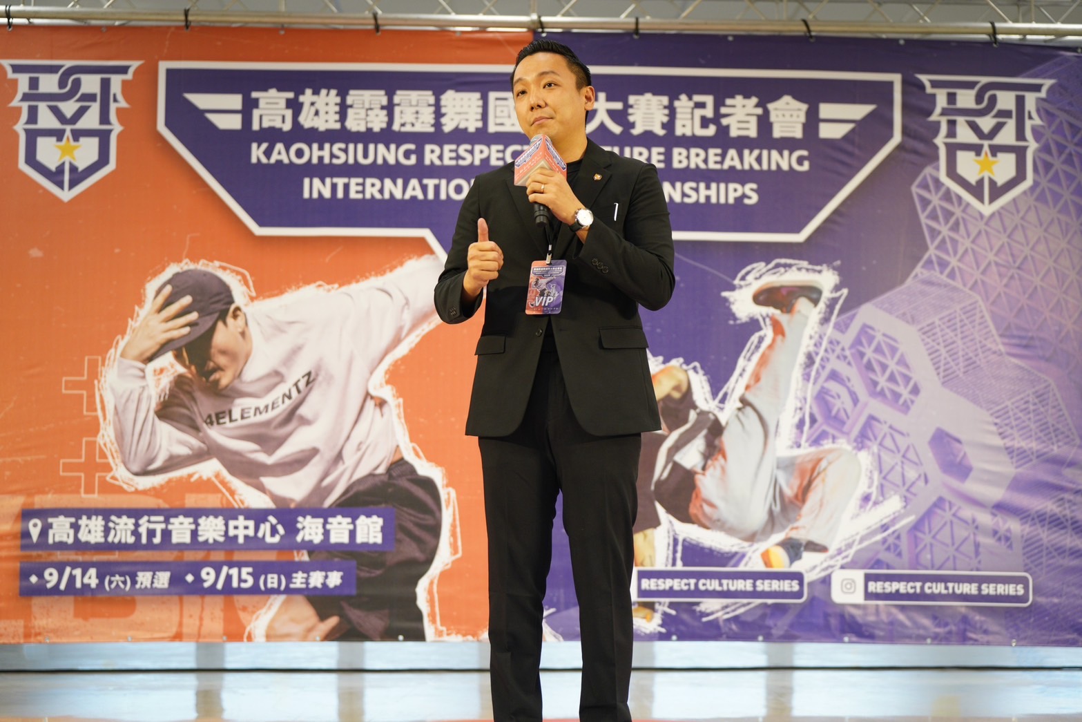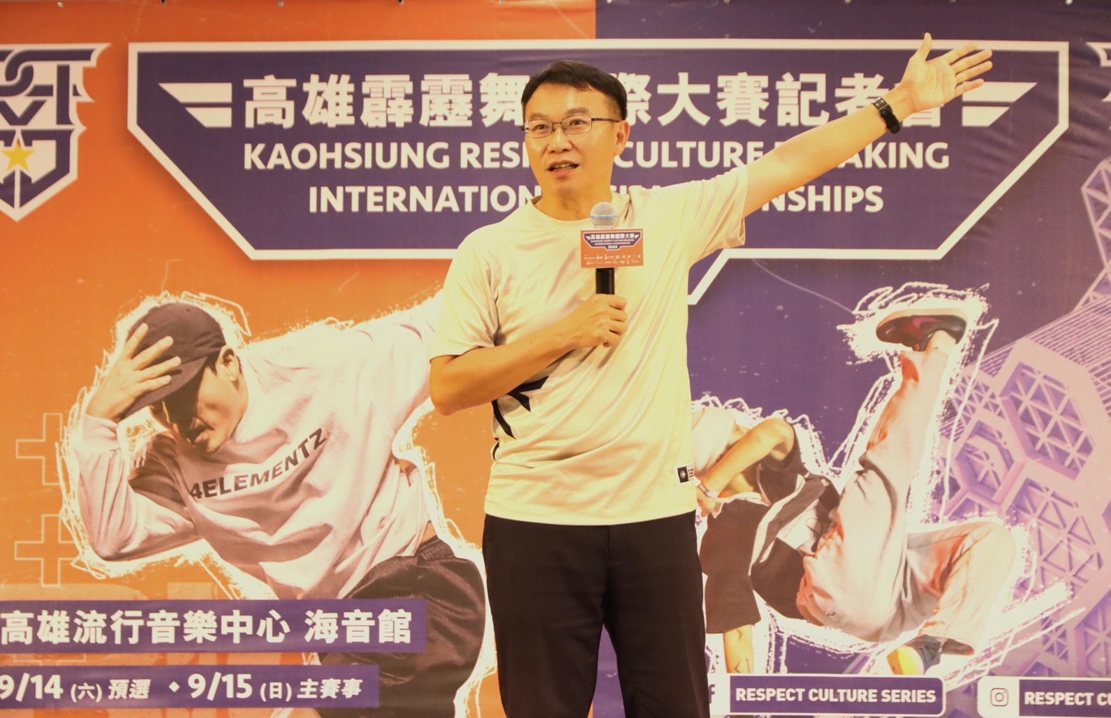 ↑圖說:運發局局長侯尊堯表示,今年總獎金達150萬,並邀請世界知名的霹靂舞選手到台灣,希望全國的觀眾9月來到高雄,為我們選手加油。(圖片來源:高雄市運動發展局提供)