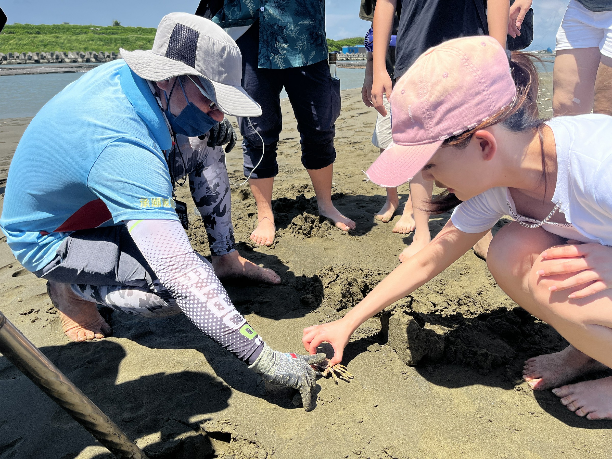 吳欣樺則前往搭乘「布袋港潮間帶海上巴士」,沿途享受海上風景,聽船長介紹養蚵方式 ,下船後尋找各種蟹類、螺類、貝類,吳欣樺驚喜表示,秘境蛋糕沙灘的沙子踩起來軟綿綿的,歡迎更多民眾前來體驗,是暑假親子旅遊好去處。