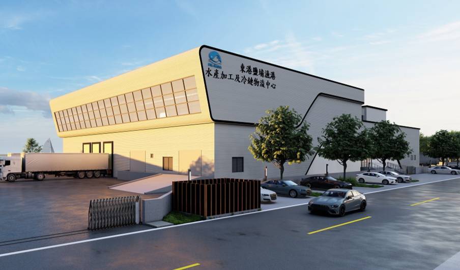 ↑圖說:東港鹽埔漁港水產加工及冷鏈物流中心完工圖。(圖片來源:屏東縣政府提供)