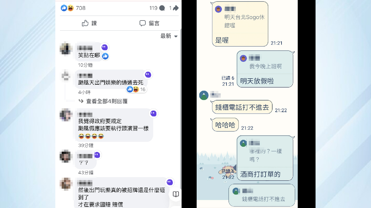 ↑圖說:對於颱風假是為額外娛樂時間,這種現象在網路上引發了熱烈討論。(圖片來源:翻攝自臉書)