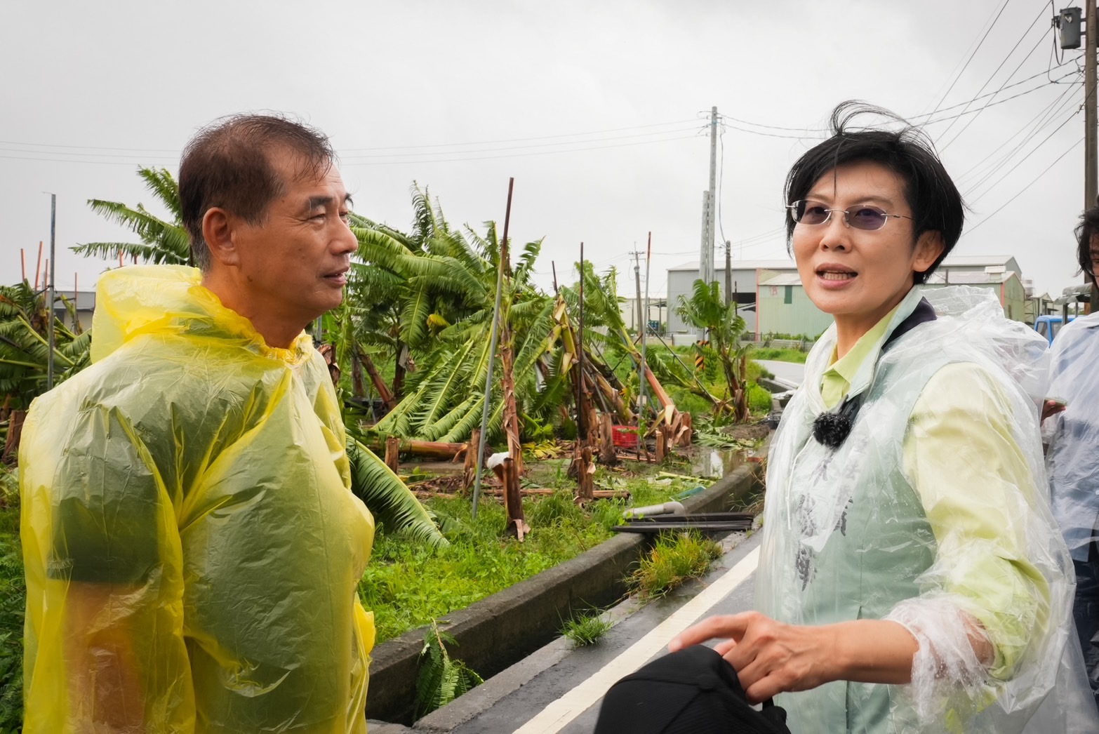 林岱樺隨後前往大寮多處香蕉田,與翁園里長蔡順豐、大寮區農會洪採梅總幹事、前總幹事蔡景逢、保險部主任辛錦貴、推廣部主任簡志翁及當地蕉農一同勘查災損情況。當地蕉農表示,香蕉田內積水嚴重,香蕉根部泡水、強風導致香蕉樹倒塌,搶收的香蕉也成為次級品,需重新種植。林岱樺立即請蕉農拍照留存,並承諾將與中央及地方政府協力,確保災損救助能從簡申請,從速給予救助。