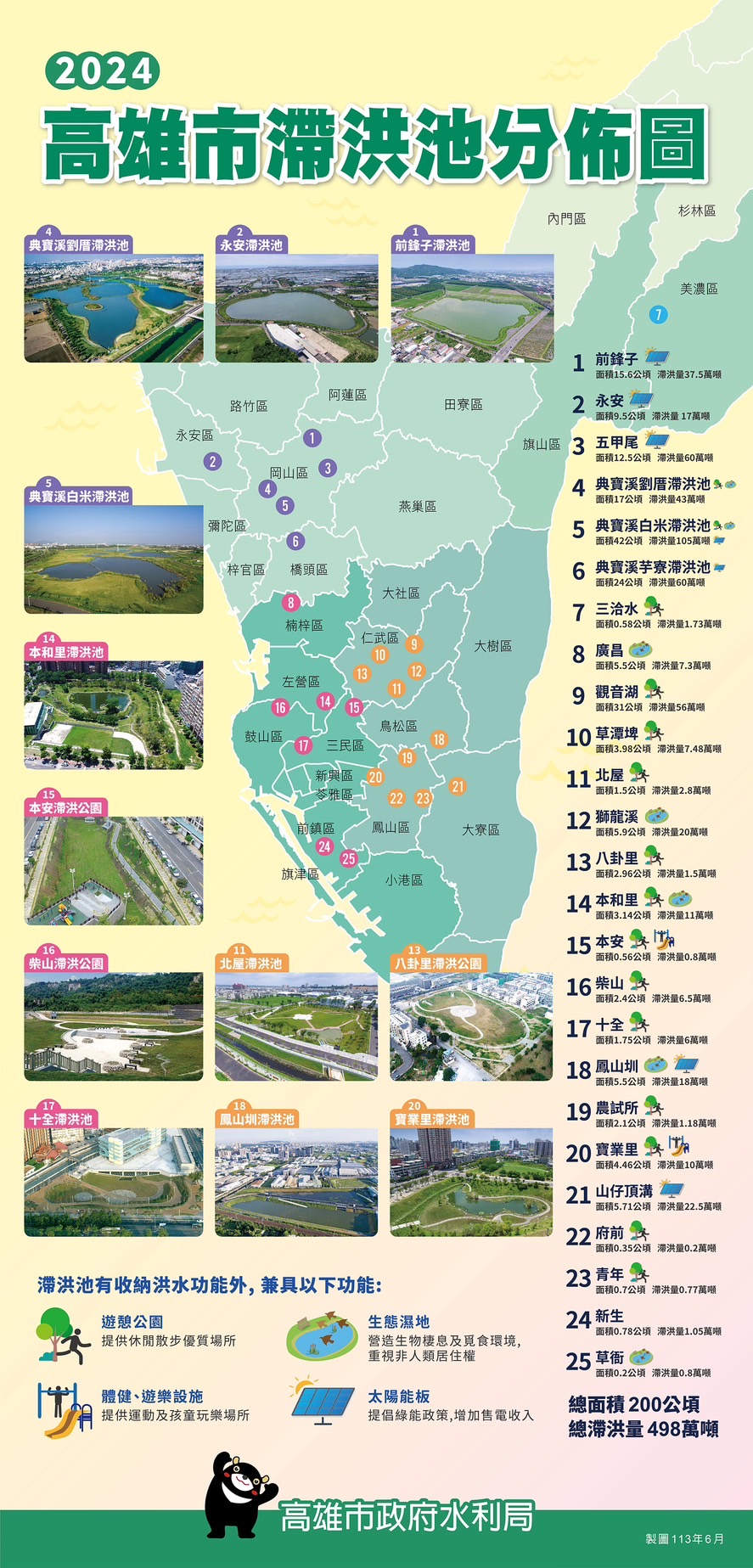 ↑圖說:高雄市滯洪池分佈圖(圖片來源:高雄市水利局提供)