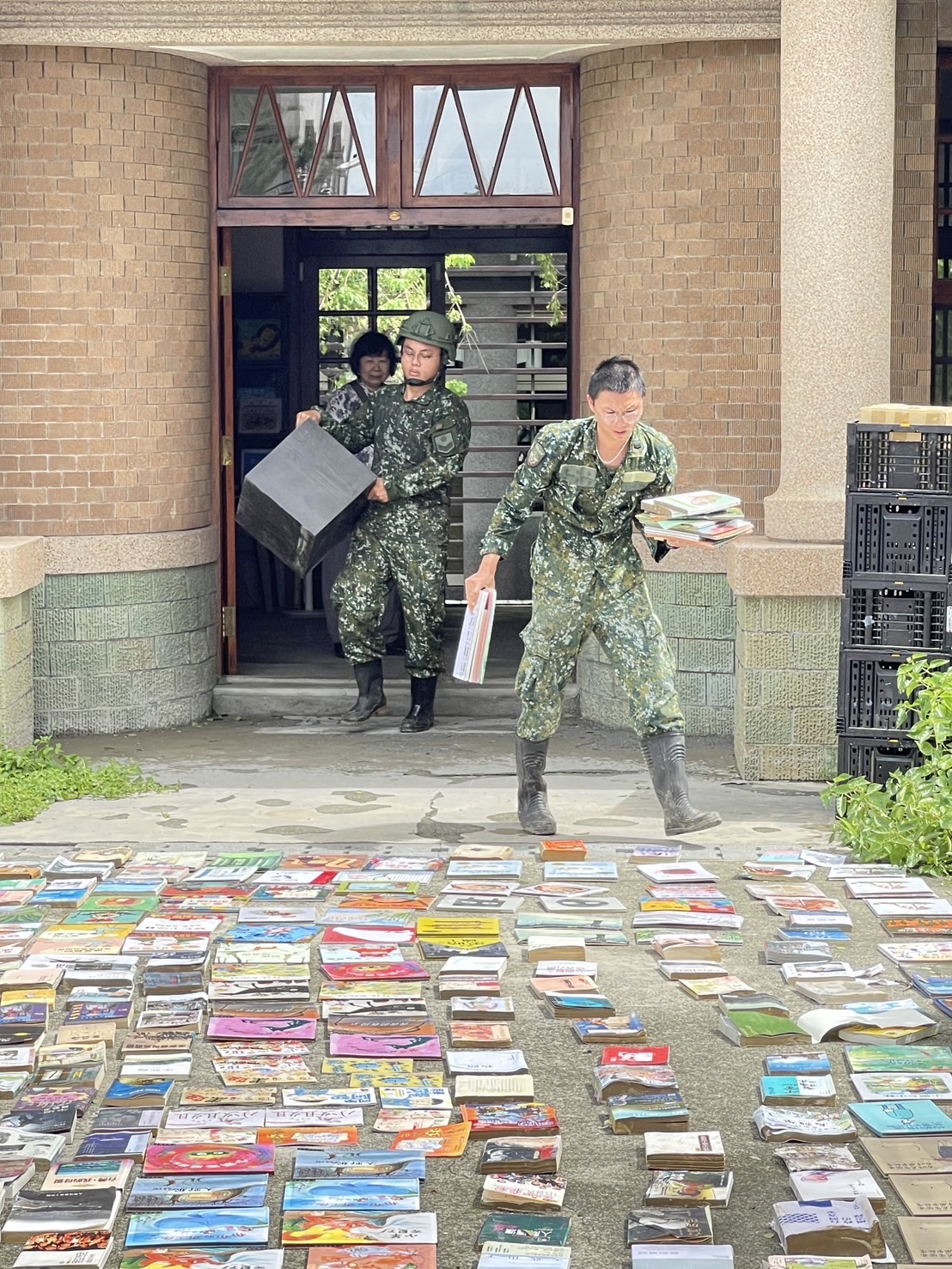 ↑圖說:幫忙災後復原的國軍來到搖籃咖啡協助清理現場(圖片來源:高雄市客家事務委員會提供)
