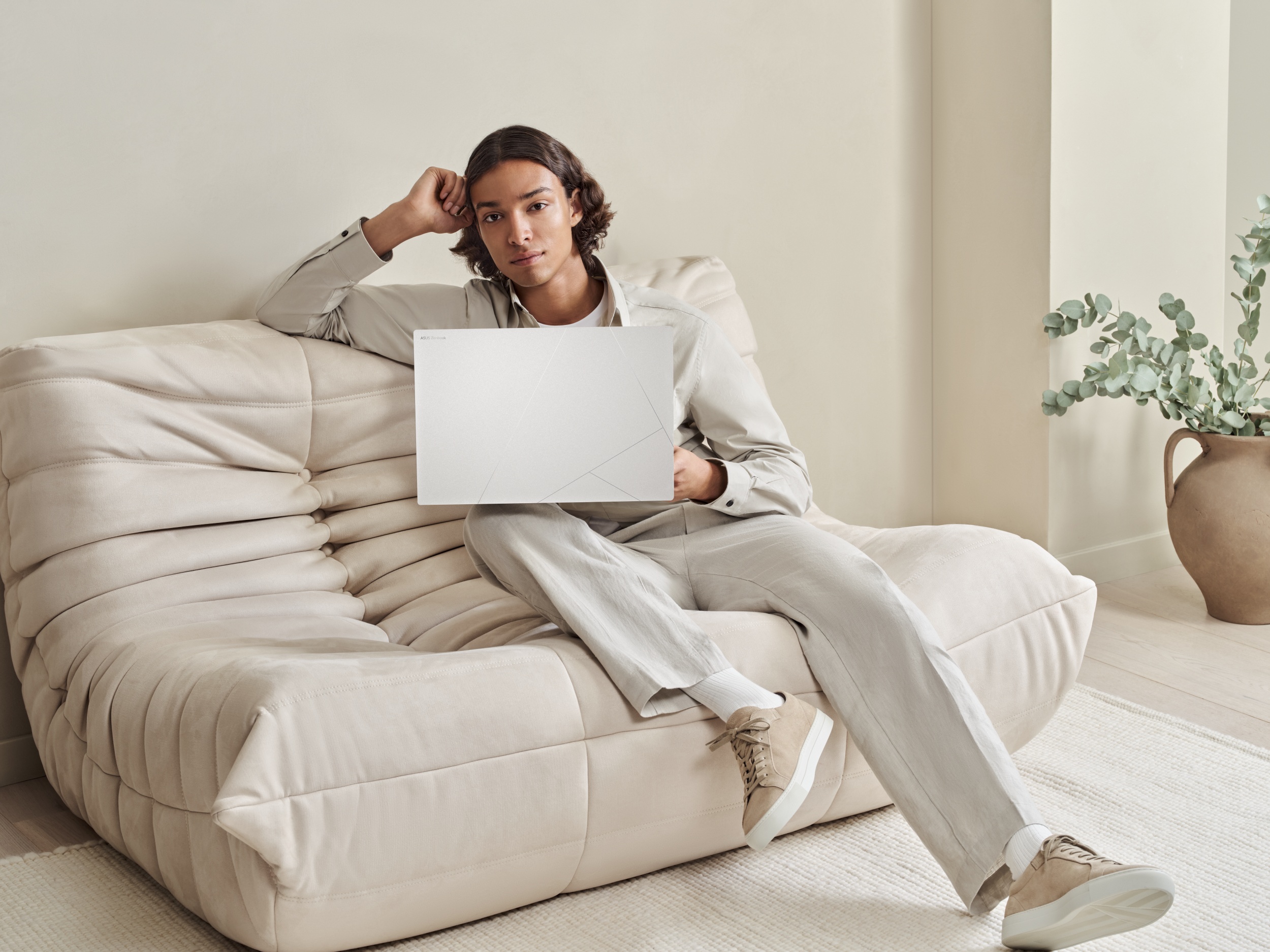 ASUS Zenbook S 16 (UM5606) 薄1.1公分,輕1.5公斤,高科技陶瓷鋁合金(Ceraluminum)外蓋具備岩石自然觸感,「暖煦白」質感機身(如上圖,華碩提供);配備16吋3K 120 Hz 16:10 OLED螢幕;搭載AMD Ryzen AI 9 HX 370處理器(NPU 50 TOPS),AMD Radeon 890M 顯示晶片,最高1 TB PCIe 4.0 SSD和32 GB LPDDR5X記憶體,可執行高效AI運算,加上華碩獨家AI應用程式StoryCube自動分類整理相簿。