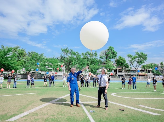 雖然凱米颱風來攪局,營隊活動經歷一次次調整,但在學生及家長熱烈期盼和支持下,終於在週末時間圓滿完成整個課程。尤其是在週日清晨,大家引頸期盼的「探空氣球發射」儀式如期舉行,在海軍大氣海洋局的大力協助,以及所有學生與家長的見證下,校長Jim、太空人Sam共同施放了攜帶氣象資料偵測裝備的探空氣球。