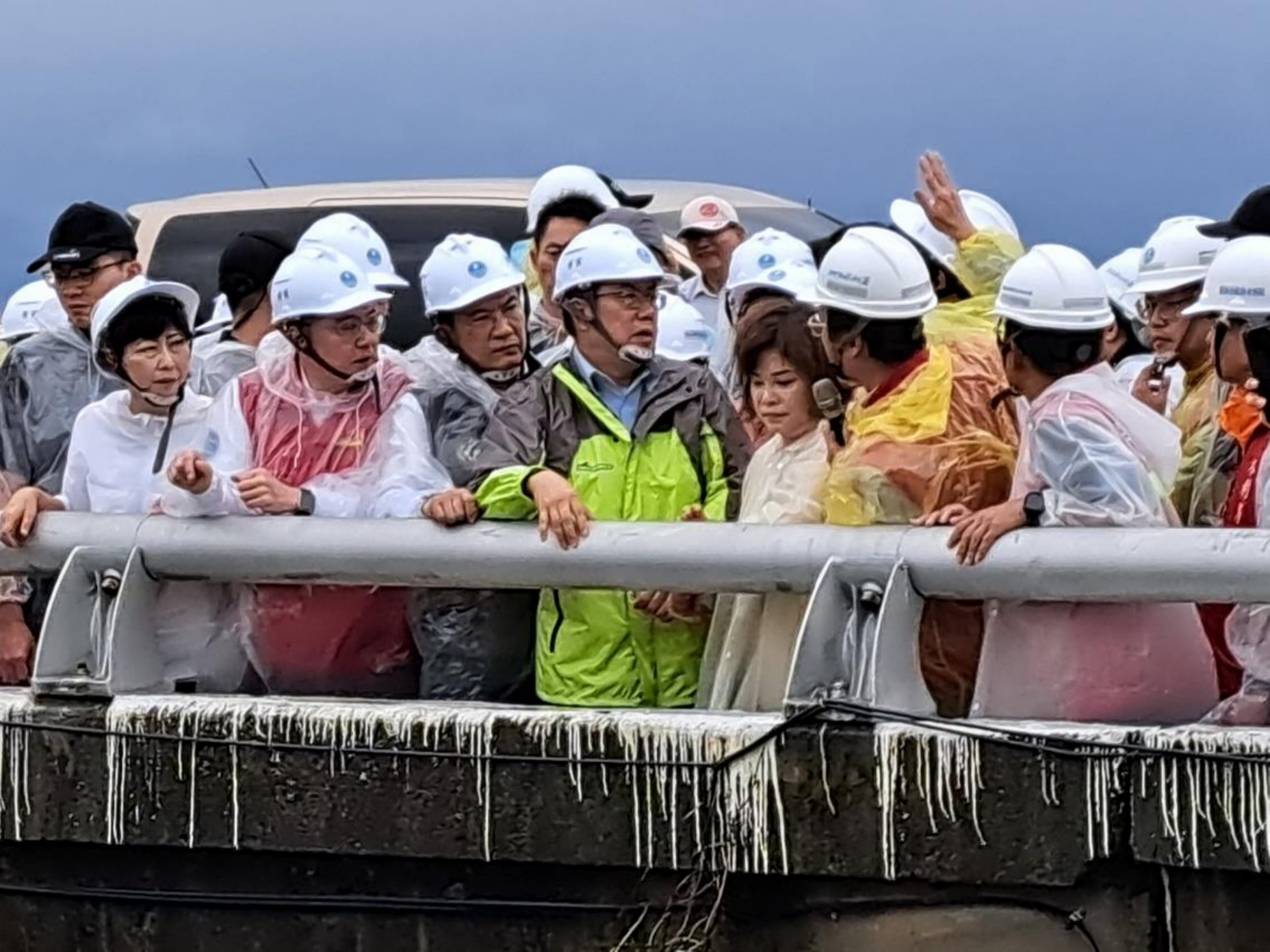 ↑圖說:凱米颱風遇年度大潮黃偉哲視察溪流情形(圖片來源:台南市政府提供)